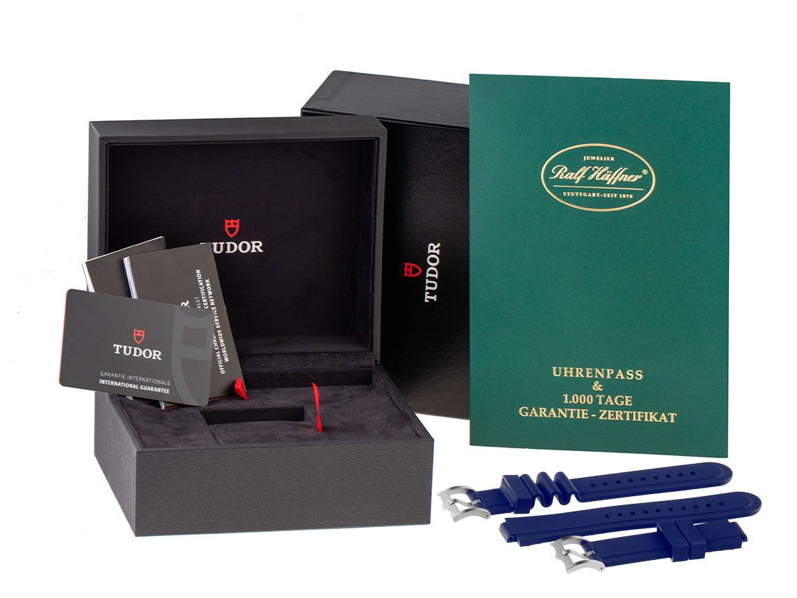 Gehäuse Titan satiniert, Gehäusedurchmesser ohne Krone 42mm, Gehäusehöhe 14,3mm. Lünette Titan mit blauem Keramik Inlay, 60-Minuten Skala und Leuchtpunkt, einseitig drehbar. Heliumventil bei 9 Uhr. Armband Titan satiniert, Sicherheitsfaltschließe Titan mit Taucherverlängerung und Hersteller-Logo. Zifferblatt blau matt mit aufgesetzten Leuchtindexen und Leuchtzeigern. Uhrwerk Automatik, Manufakturkaliber MT5612 mit 28 Edelsteinen, Gangreserve ca. 70 Stunden. Anzeige von Stunde, Minute und Sekunde über Zeiger aus der Mitte mit Sekundenstopp zur sekundengenauen Einstellung der Uhrzeit, Datumsanzeige mit Schnellverstellung bei 3 Uhr. Saphirglas kratzfest. Krone verschraubbar mit Flankenschutz und Hersteller-Logo. Boden Titan verschraubt und graviert. Gewicht der Uhr inklusive Armband 149g. Länge des Armbandes inklusive Gehäuse 190mm. Wasserdicht bis 50 ATM. Referenznummer: M25600TB-0001, ID: ST116076200925H-5170, Artikelnummer: 10000082352. Original Tudor Box und Garantie Papiere von September 2025 sowie Beschreibung und zusätzliches Kautschukarmband blau mit Stiftschließe, Full Set. Ungetragen. Lieferzeit sofort.
