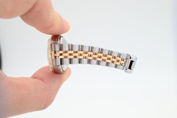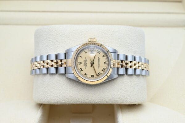 Rolex Lady-Datejust Ref. 69173 with the champagne roman dial from 1988 in excellent condition, including the original box and papers.All of our watches have been thoroughly checked by our own watchmaker and serviced when needed.