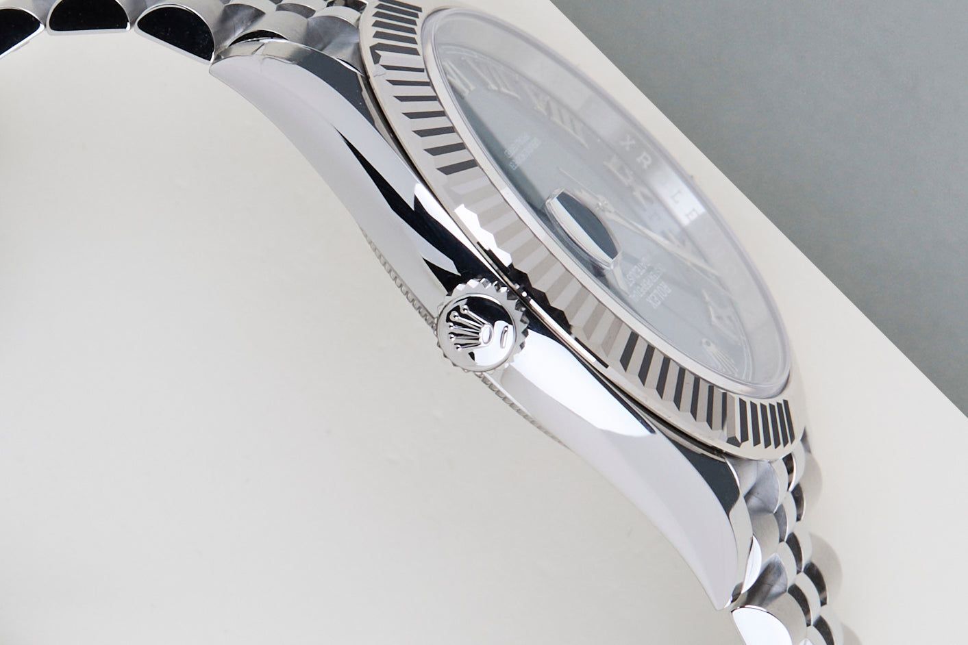 New & Unworn | Full Set | International Rolex Warranty until October 2030 Rolex introduced the original Datejust in 1945 to celebrate the company's 40th anniversary. Due to the various case sizes and materials, the Datejust has been ingrained in Rolex's history and remains incredibly popular for 75 years.This Rolex Datejust 41 'Azzurro Blue Dial - Jubilee' was sold for the first time in October 2025.This Datejust is made of a combination of 18k White Gold and stainless steel and is fitted with a Jubilee bracelet, which is equipped with the Easylink. This extension, allows the wearer to either extend or shorten the bracelet by 5 millimeters, improving the wearability and usability of the watch.This Rolex Datejust 41 is a New & Unworn and comes with the original Rolex Warranty Card and box. Furthermore, the watch still has Worldwide Rolex Warranty until October 2030.