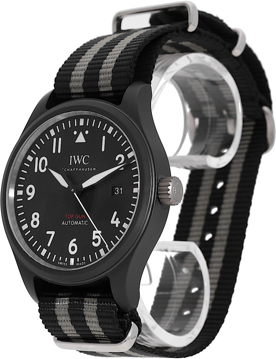 IWC Pilot's Watch Automatic Top Gun "SIHH 2019", Reference: IW326901, Gender: Male, Size: 41mm, Dial color: Black, Strap material: Textile, Movement: Automatic, Year: 2020, Condition: Previously worn with some signs of usage. The movement is flawless and the case has been cleaned. watch tested to ensure full functionality. An inspection by our certified watchmakers guarantees its authenticity., Documents: Original papers, CHRONEXT Certificate