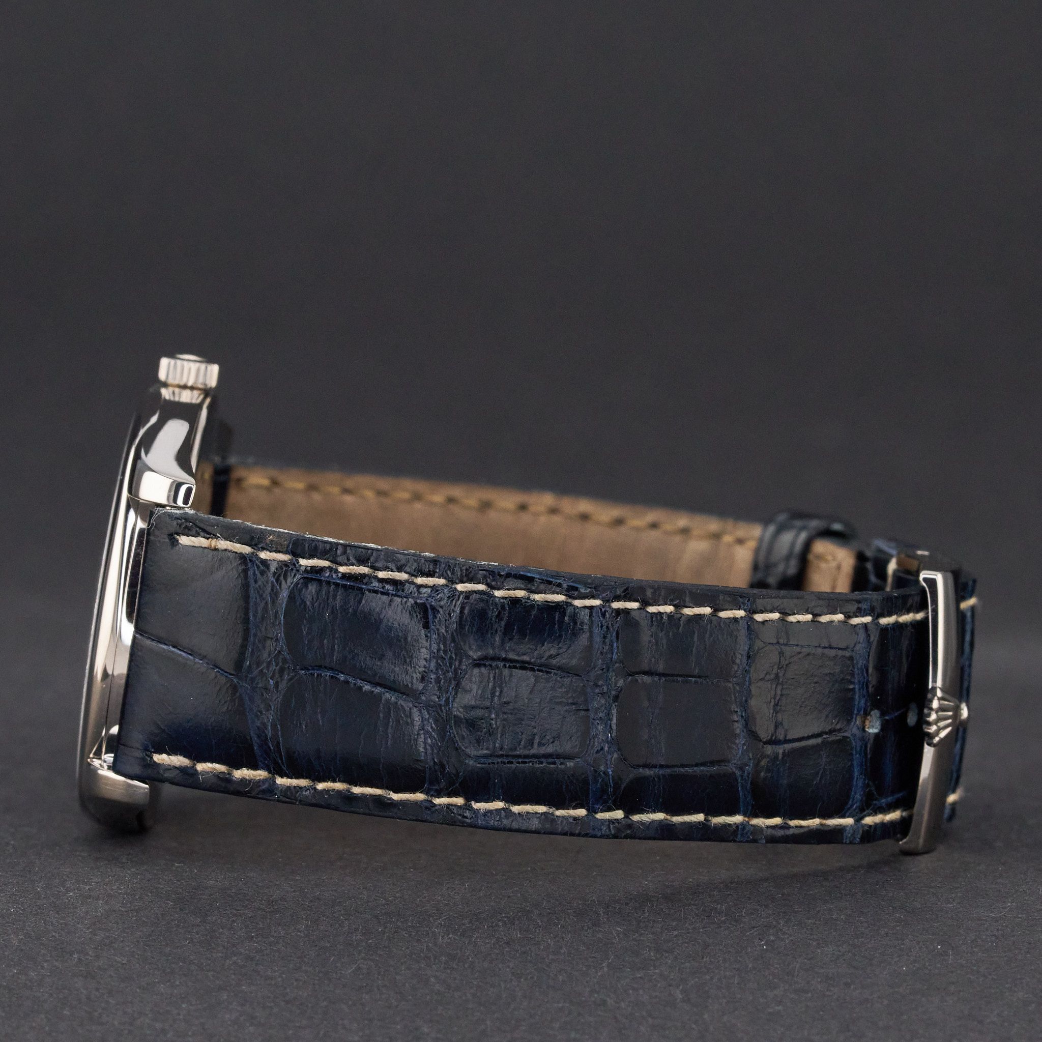 Este Rolex Cellini Danaos 4233 apresenta um mostrador preto com números árabes e é feito de ouro branco 18K, com ano de produção de 2006.