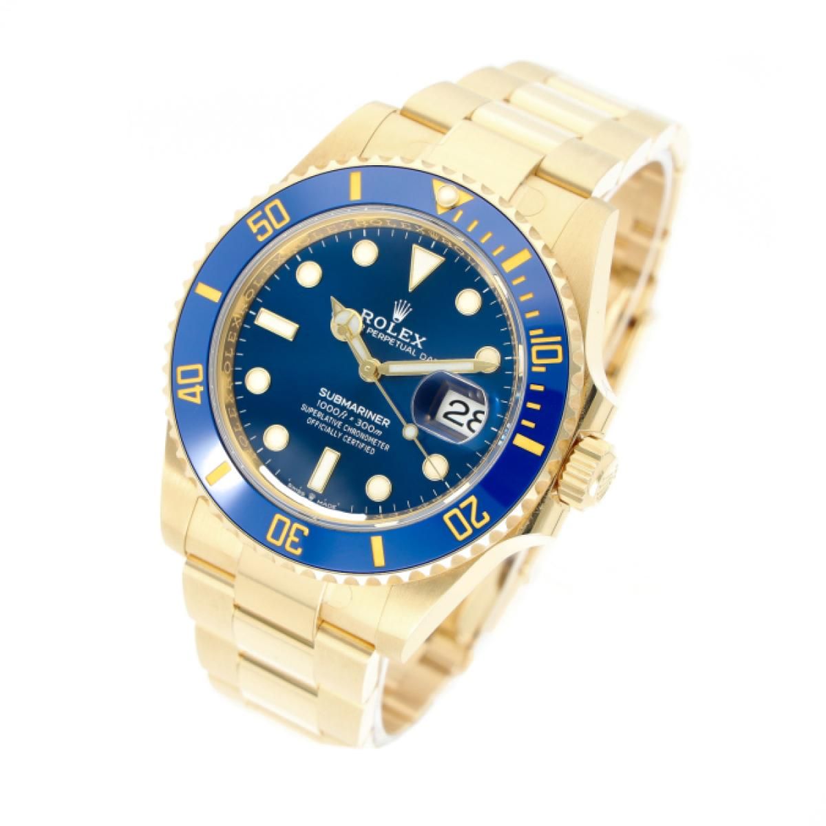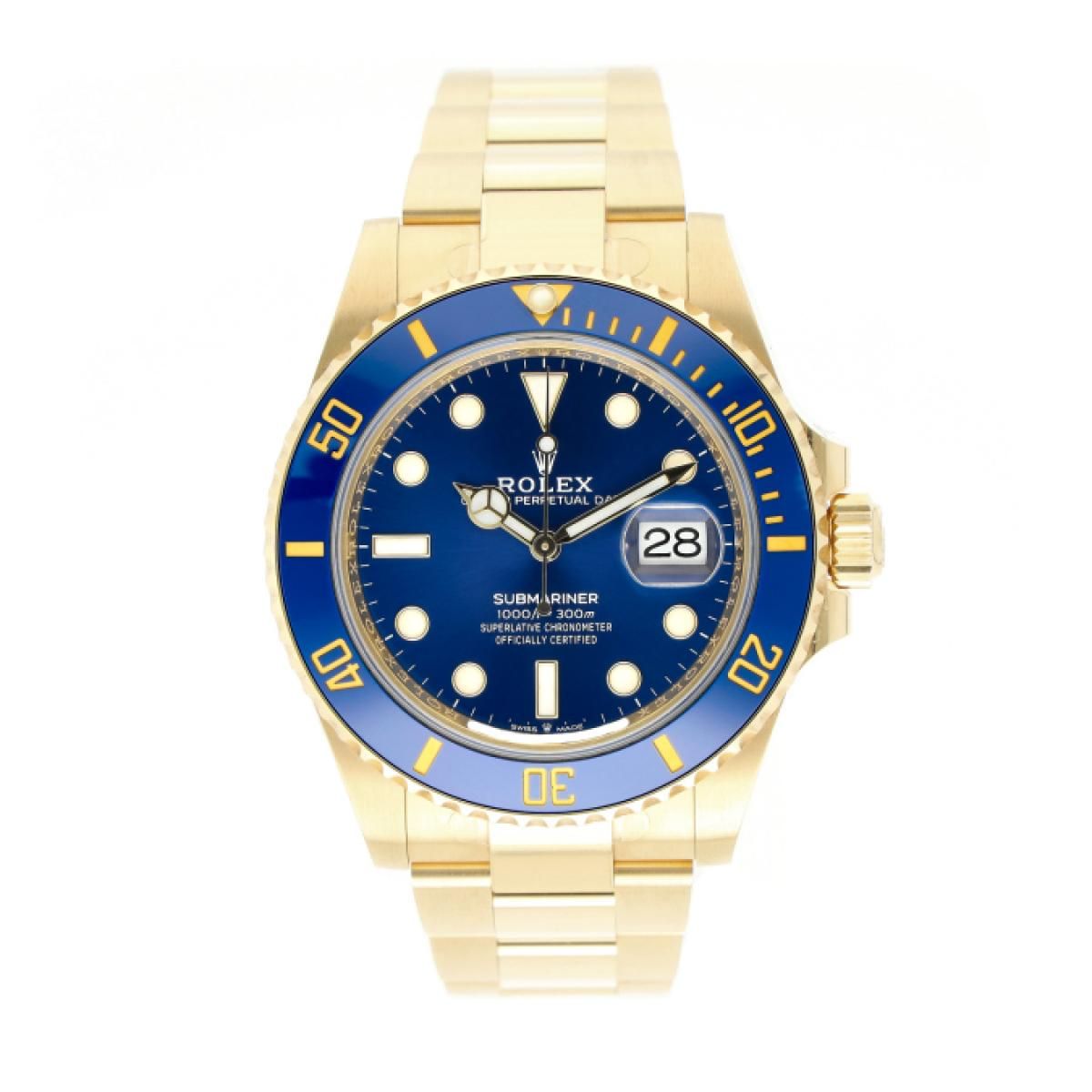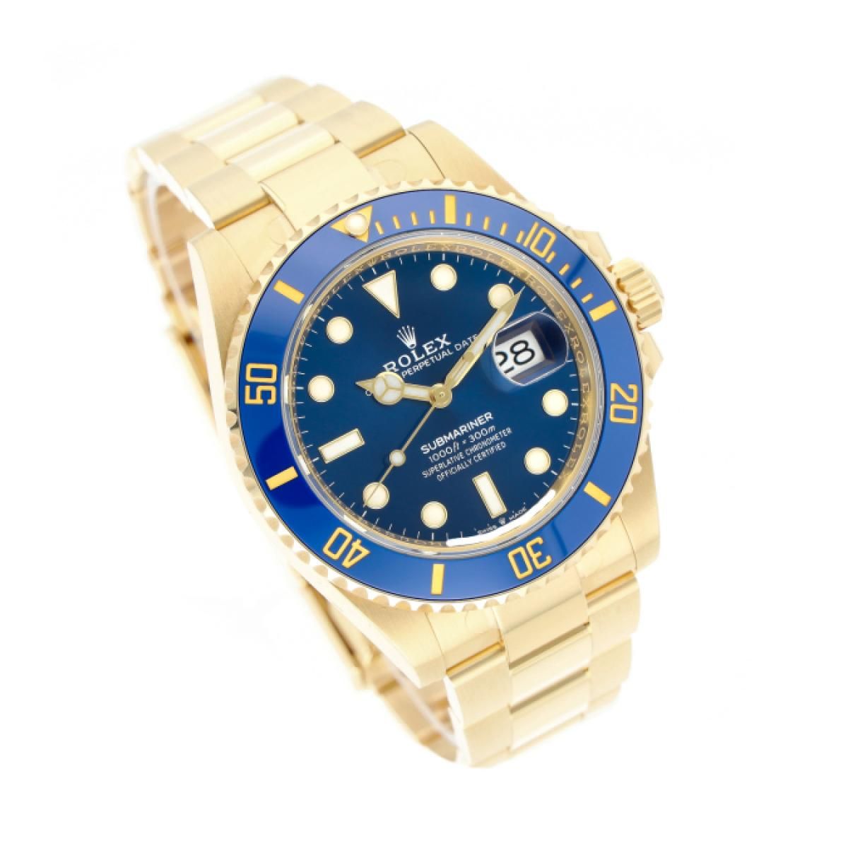 Rolex Submariner Date de 2021 com caixa de ouro amarelo de 41 mm e fecho dobrável. Este relógio masculino da Rolex está em muito bom estado.