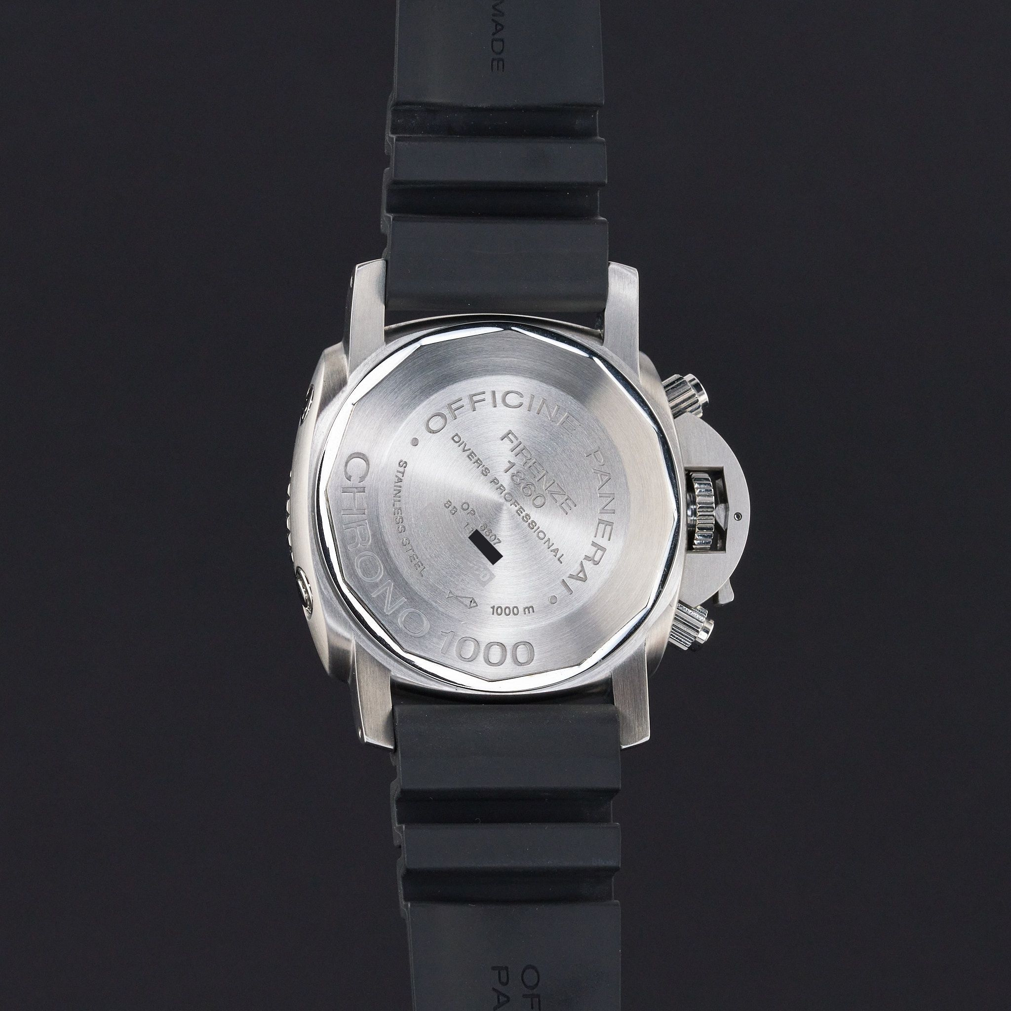 The watch is presented on an original "Panerai" black rubber strap with “Panerai” logo clasp.
