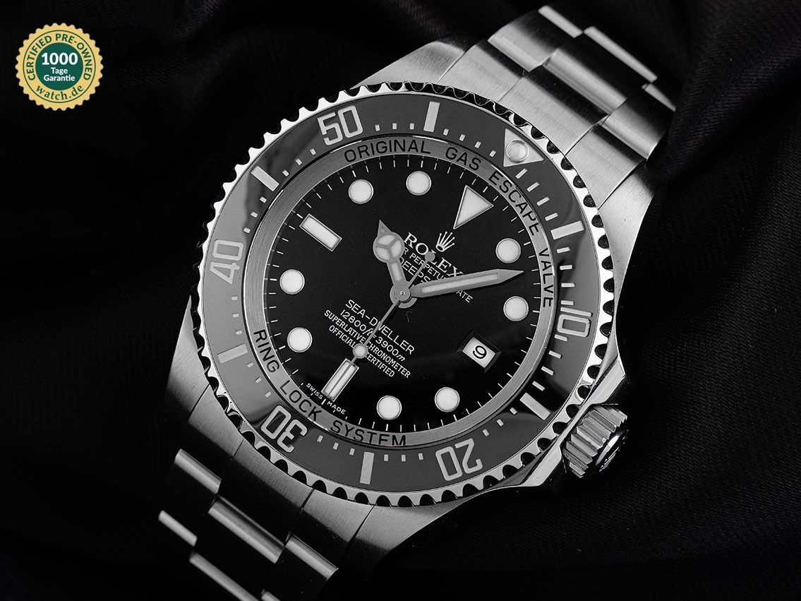 Rolex Sea-Dweller Deepsea Stahl Keramik Automatik Armband OysterGehäuse Edelstahl poliert und satiniert, Gehäusedurchmesser ohne Krone 44mm, Gehäusehöhe 17,8mm. Lünette Edelstahl gerädelt mit schwarzem Keramik Inlay, 60-Minuten Skala, einseitig drehbar. Heliumventil bei 9 Uhr. Armband Oyster Edelstahl poliert und satiniert, Rolex Sicherheitsfaltschließe Edelstahl mit Hersteller-Logo. Zifferblatt schwarz mit aufgesetzten in Weißgold gefassten Indexen und Punkten sowie weißgoldenen Zeigern. Uhrwerk Automatik, Chronometer mit Zeugnis, Rolex Manufakturkaliber 3135 mit 31 Edelsteinen, Parachrom Breguetspirale. Anzeige von Stunde, Minute und Sekunde über Zeiger aus der Mitte mit Sekundenstopp zur sekundengenauen Einstellung der Uhrzeit, Datumsanzeige mit Schnellverstellung bei 3 Uhr. Saphirglas kratzfest und bombiert, extrastark (5mm). Krone Triplock verschraubbar mit Flankenschutz und Hersteller-Logo. Boden Edelstahl verschraubt und graviert. Gewicht der Uhr inklusive Armband 208g, Länge des Armbandes inklusive Gehäuse 170 - 190mm verstellbar. Referenznummer: 116660, Gehäusenummer: M955XXX, ID: KA1632196841025RE-12800, Artikelnummer: 10000082771. Mit Gangkontrolle und äußerlicher Aufarbeitung von Oktober 2025. Original Rolex Box mit Umkarton und Garantie Papiere von September 2008, LC 522 / Libanon sowie Beschreibung, Ledermäppchen, Rolex Chronometer-Siegel und Watchregister Auszug von Oktober 2025, The Watch Register Zertifikat / ohne Eintrag (Internationale Datenbank für verlorene oder gestohlene Uhren), Full Set. Superschnäppchen, Kapitalanlage mit Wertsteigerungspotenzial, fast nicht getragen. Wie Neu. Lieferzeit sofort.