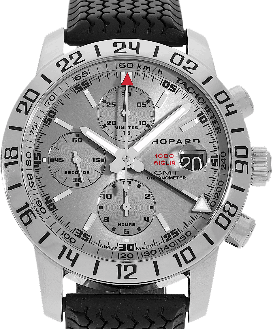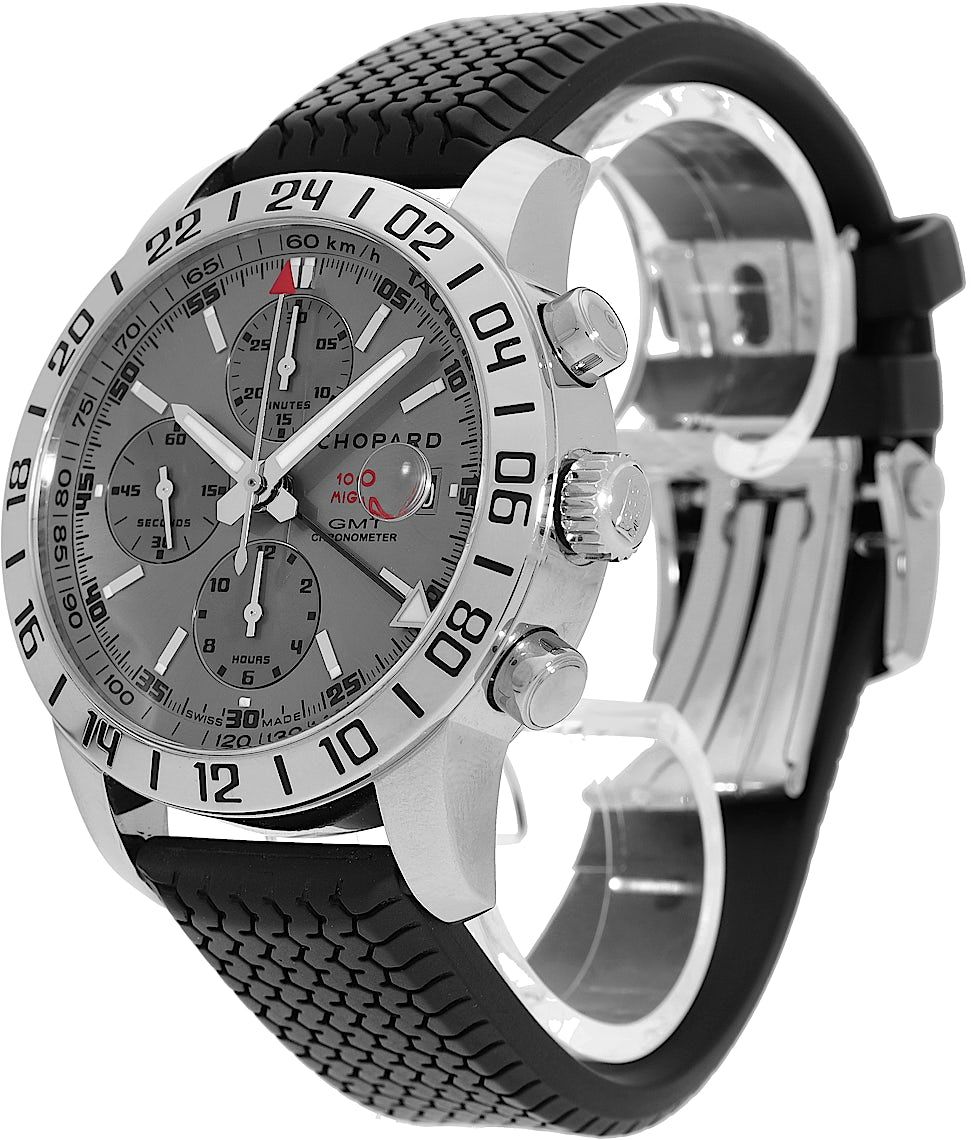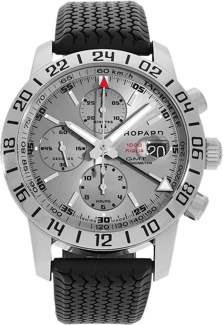 Chopard Mille Miglia GMT, Reference: 8992, Gender: Male, Size: 42mm, Dial color: Grey, Strap material: Rubber, Movement: Automatic, Condition: Previously worn, minor to no signs of usage. The movement is flawless and the case has been cleaned. watch tested ensure full functionality. An inspection by our certified watchmakers guarantees its authenticity., Documents: Chronext Certificate
