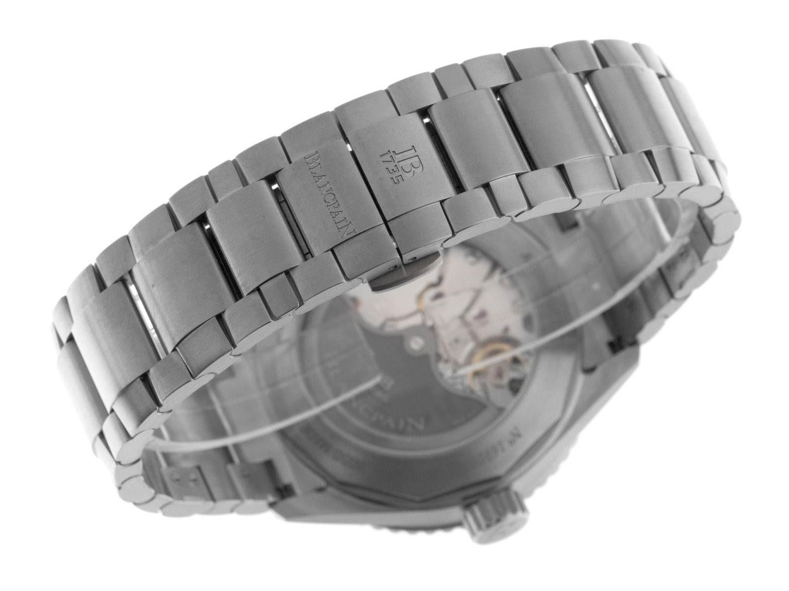 Caixa de titanio polido, diâmetro da caixa sem coroa 43mm, altura da caixa 13,4mm. Luneta de titanio com ranhuras e inserto de cerâmica preta com escala de 60 minutos e ponto luminoso, giratória apenas de um lado. Pulseira de titanio satinada, fecho de segurança oculto em titânio com logotipo do fabricante. Mostrador cinza com pontos luminosos aplicados e índices luminosos, além de ponteiros luminosos. Movimento automático, calibre Blancpain 1315 com 35 pedras preciosas, reserva de marcha de cerca de 120 horas. Exibição de horas, minutos e segundos através de ponteiros centrais com parada de segundos para ajuste preciso da hora, exibição de data com ajuste rápido entre 4 e 5 horas. Vidro de safira resistente a riscos. Coroa rosqueada com logotipo do fabricante. Fundo de titânio rosqueado e gravado com janela de safira. Peso do relógio incluindo a pulseira 131g, comprimento da pulseira incluindo a caixa 195mm. À prova d'água até 30 ATM. Número de referência: 5000 1210 98S, ID: ST1160225201025H-16350, número do artigo: 10000082867. Caixa original Blancpain com embalagem externa e documentos de garantia de setembro de 2025, além de descrição, conjunto completo. Super oferta. Nunca usado. Prazo de entrega imediato.