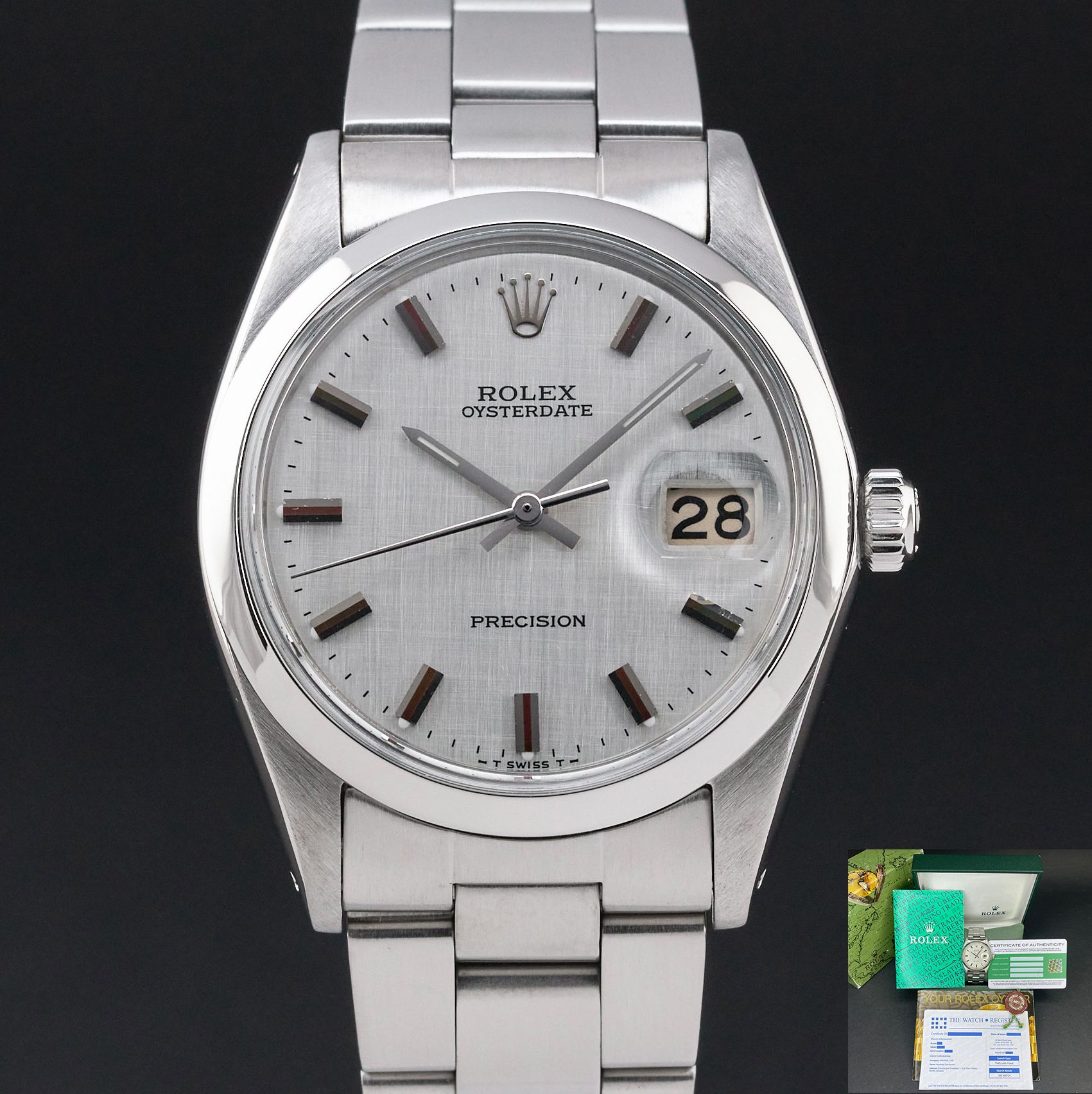 Rolex Oysterdate Precision, 6694, 34mm, 1967, Steel, Silver Linen dial, Box, 1y warranty