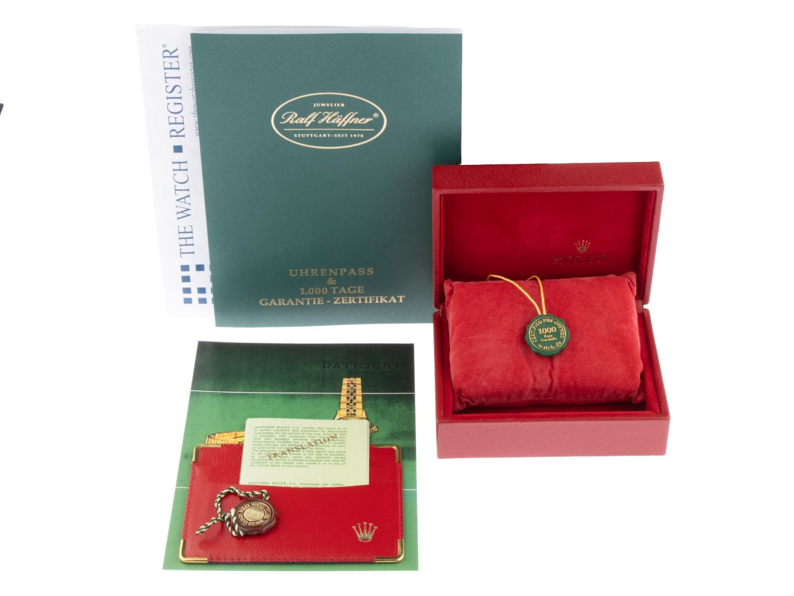 Inklusive certified pre owned Siegel / Uhrenpass mit einem Farbbild, der genauen Beschreibung sowie dem Wiederbeschaffungswert der Uhr über 5900,-€ und 1000 Tage Garantie ab Kaufdatum.