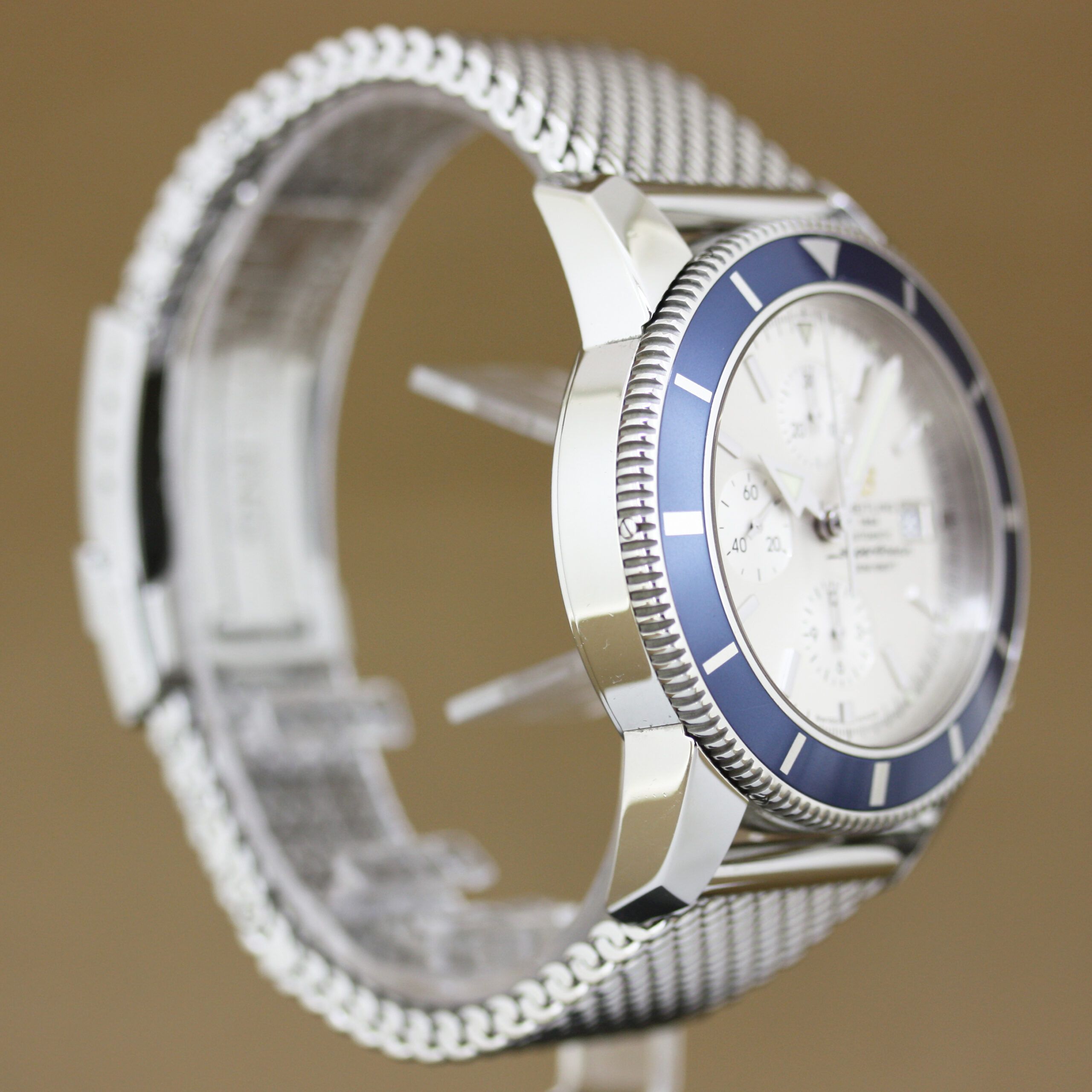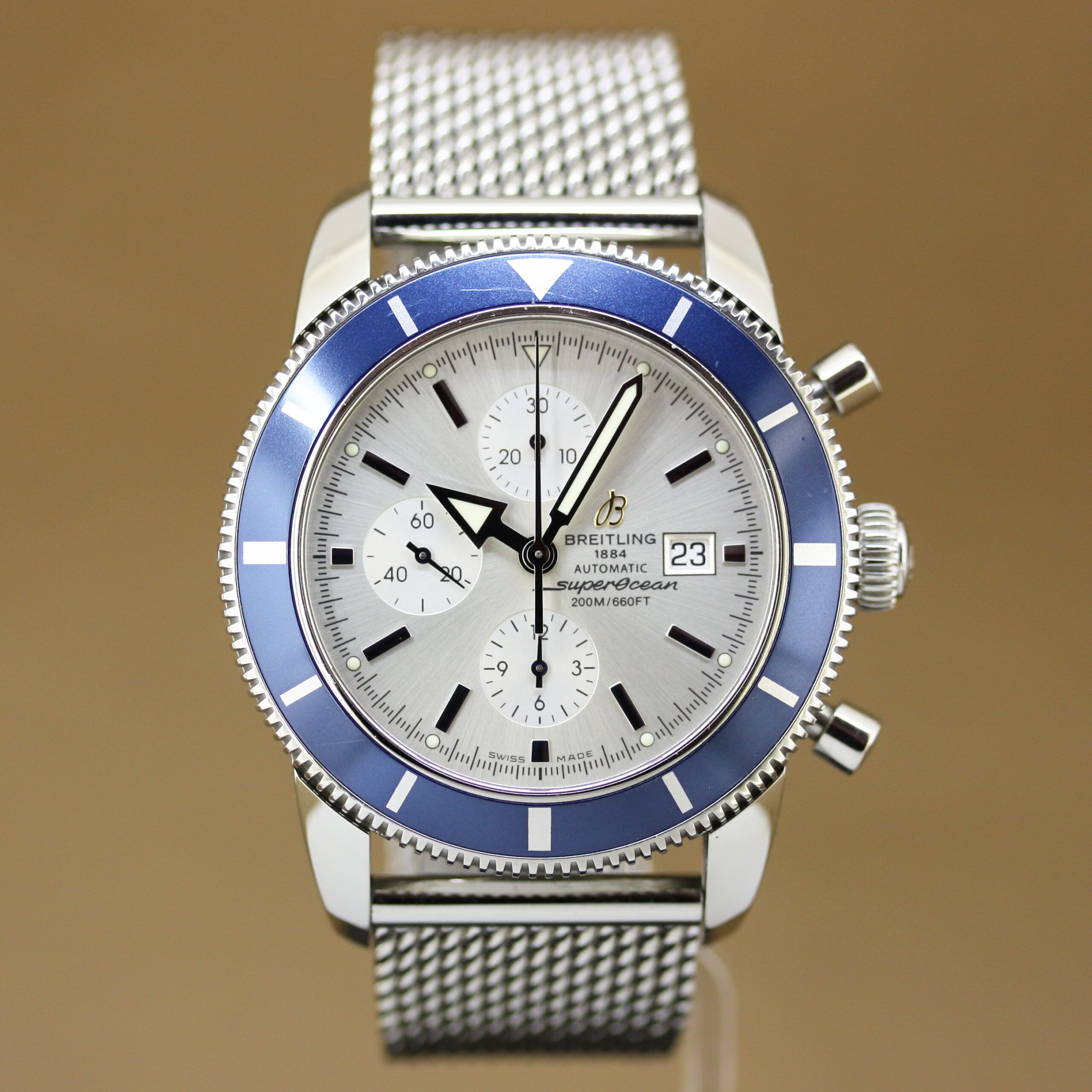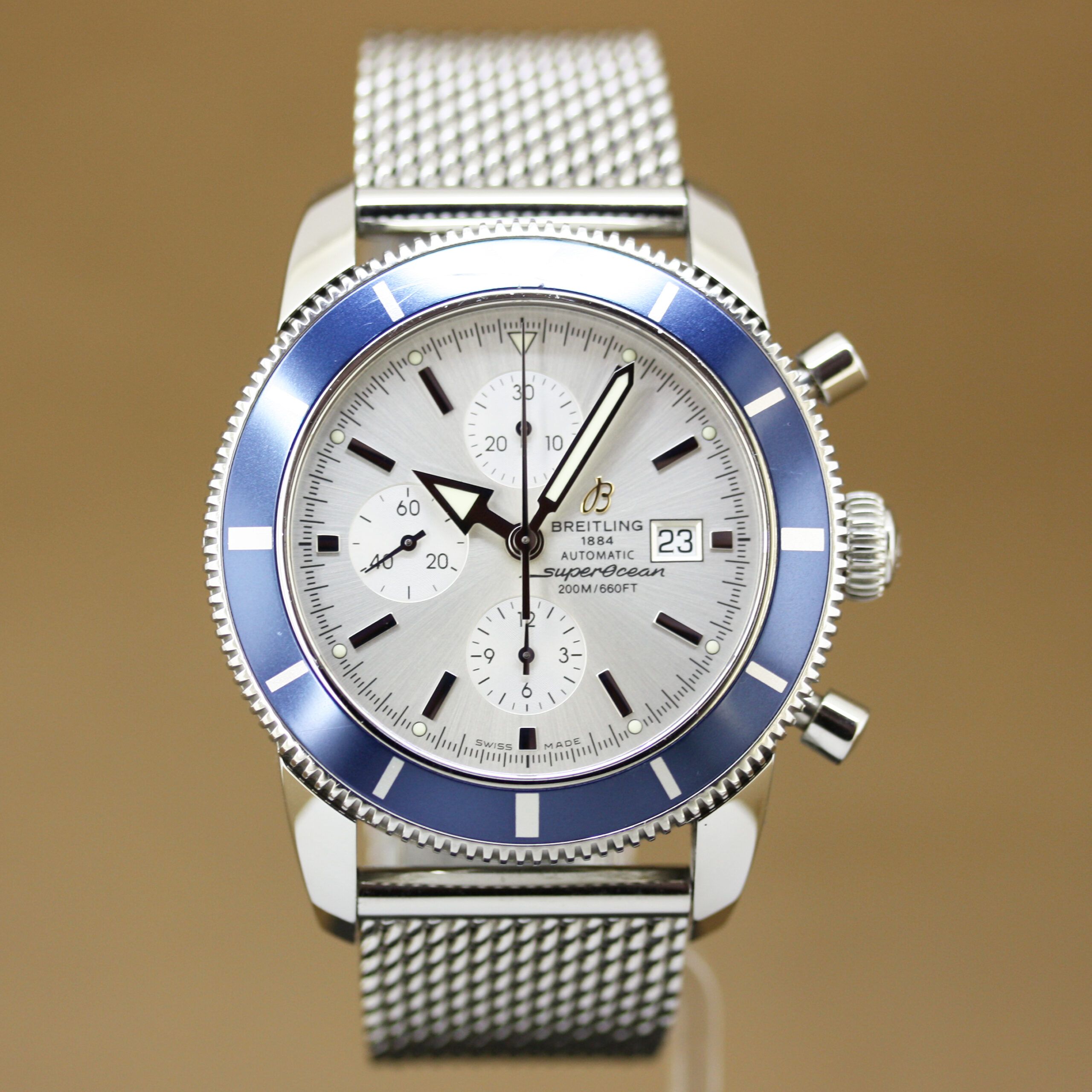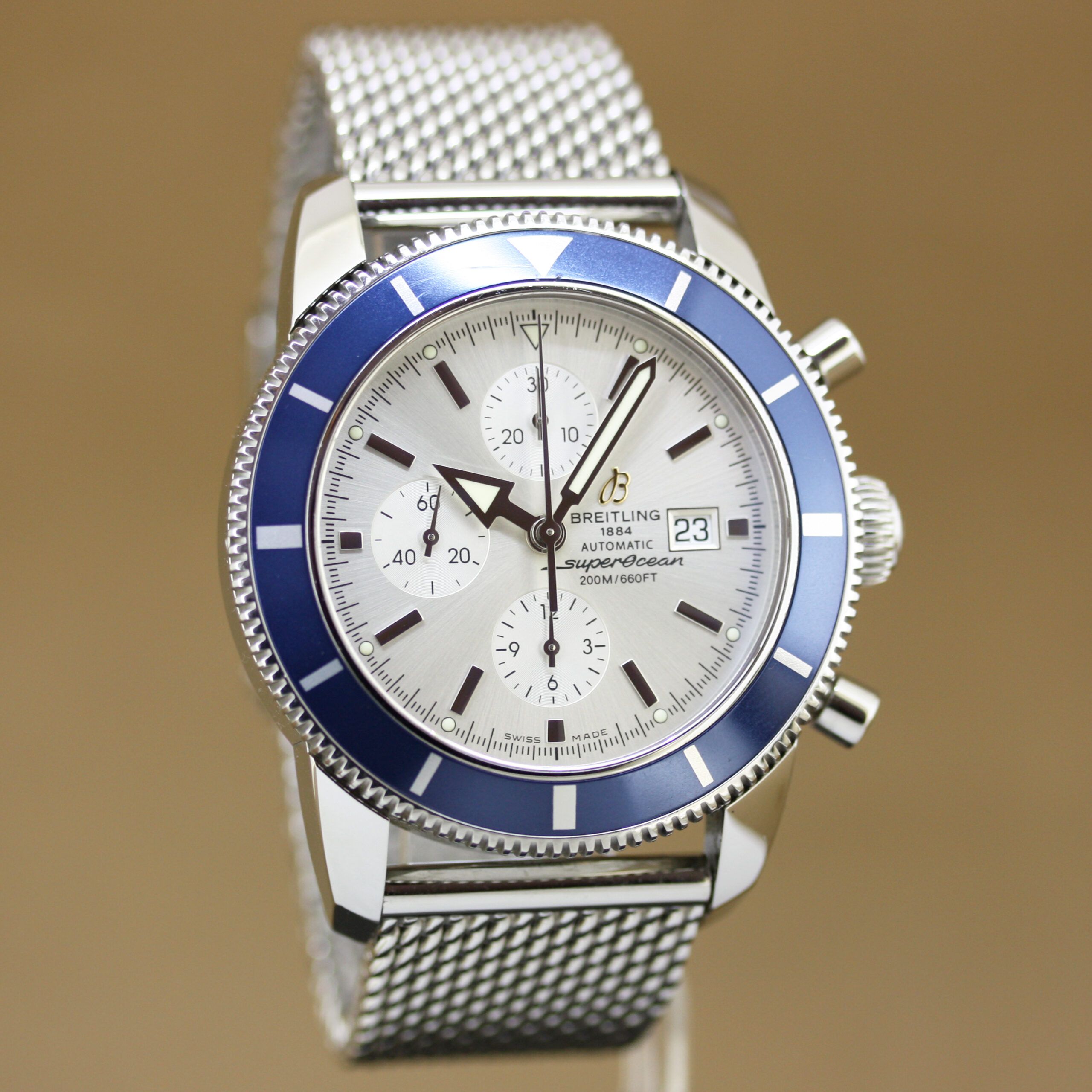 Breitling Superocean Heritage Chronograph ref: A13320 in very good condition, equipped with a steel case and a silver dial. Watch has a steel strap with folding clasp. This model has an automatic movement with date and chronograph function. The watch comes with box (Breitling travel case), certificate of authenticity & valuation report.