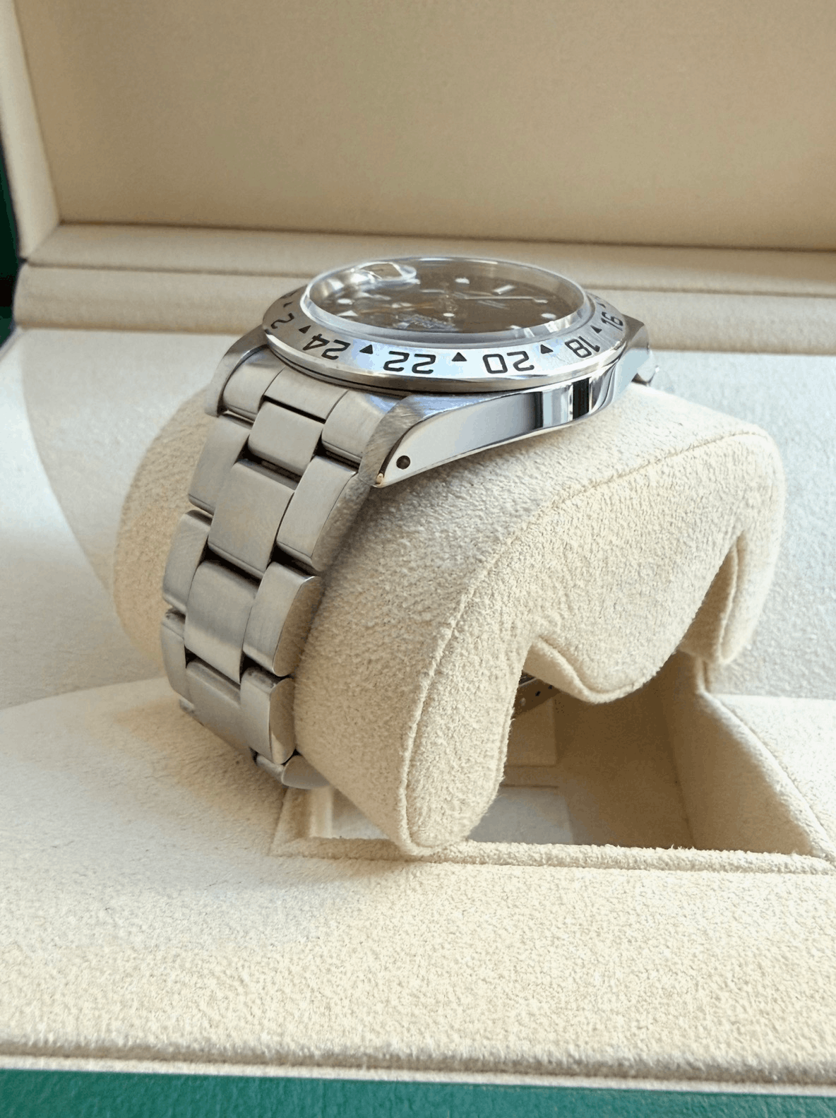 - Sinais leves de uso como micro-riscos ou pequenos riscos superficiais. A caixa, a luneta e a bracelete mantêm arestas definidas e a forma original. Pode ter sido polido profissionalmente sem afetar os contornos originais. Totalmente funcional mecanicamente.