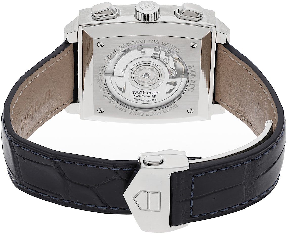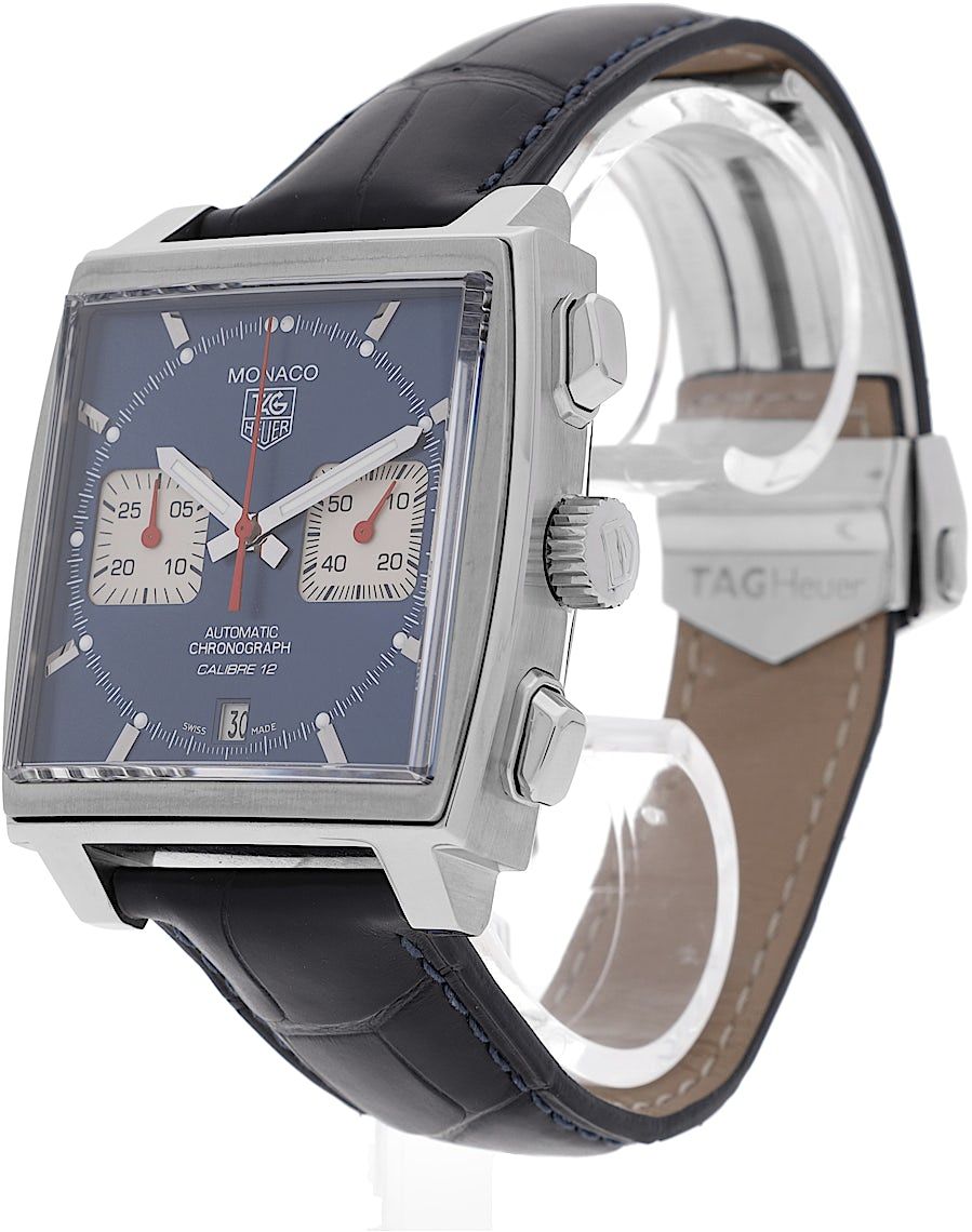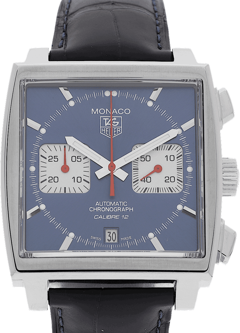 TAG Heuer Monaco, Reference: CAW211, Gender: Male, Size: 39mm, Dial color: Blue, Strap material: Alligator Leather, Movement: Automatic, Year: 2012, Condition: Previously worn, minor to no signs of usage. The movement is flawless and the case has been cleaned. watch tested ensure full functionality. An inspection by our certified watchmakers guarantees its authenticity., Documents: Original papers, CHRONEXT Certificate