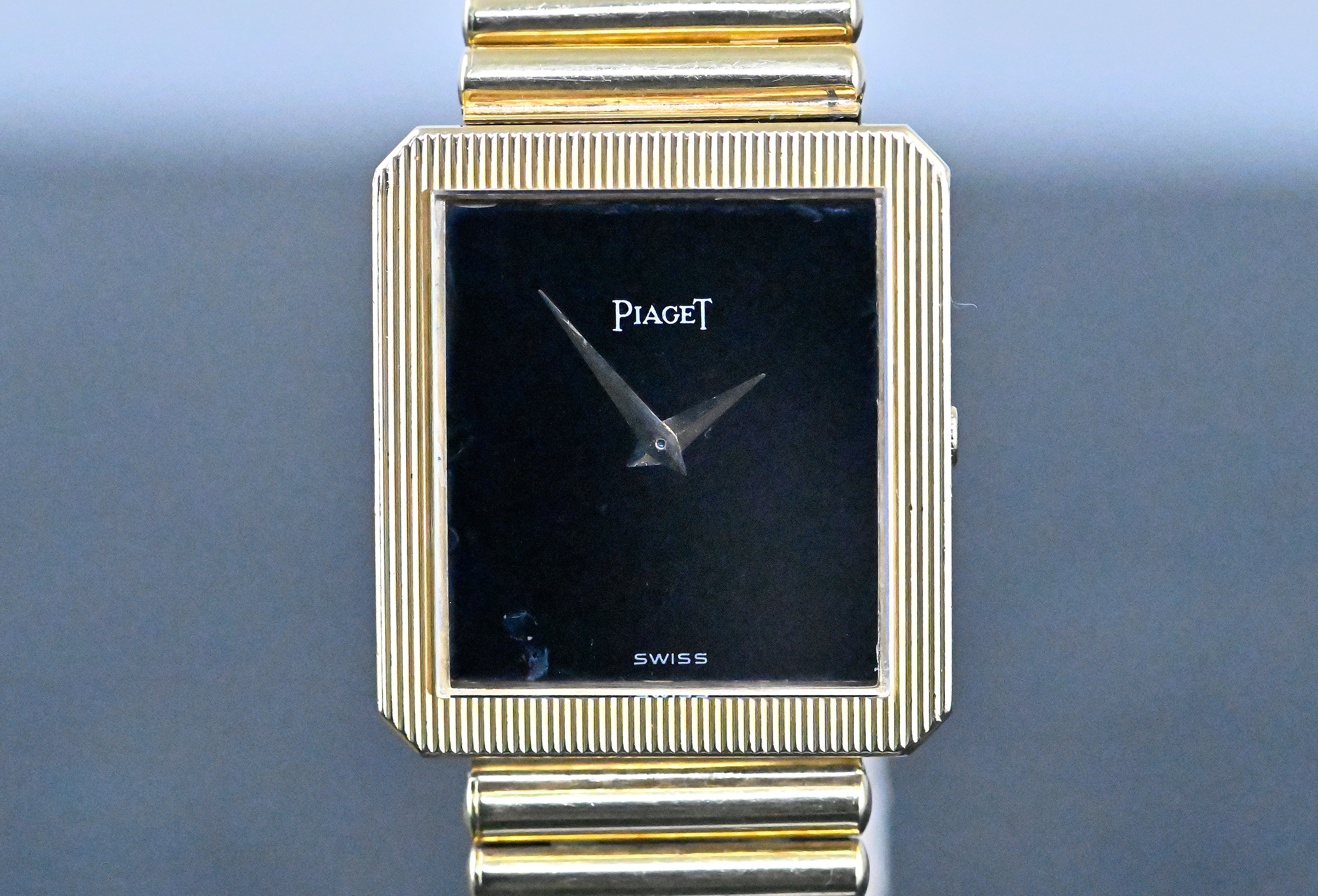 Piaget Vintage Protocole | referência 9154 | em ouro amarelo 18k | com pulseira e fecho de joia também em ouro amarelo 18k | calibre 9P manual da Piaget | mostrador de ônix, que (como alguns mostradores de pedra deste período) apresenta alguns danos menores, especialmente ao redor da borda | a pulseira de ouro amarelo 18k com fecho de joia tem um comprimento total de aproximadamente 17,8 cm, incluindo a caixa, podendo, claro, ser encurtada ou alongada por um bom ourives, se necessário | as dimensões da caixa são 25 × 27 mm (sem coroa) | boa condição | peso total aproximadamente 76,6 gramas | Em novembro de 2025, nosso mestre relojoeiro realizou um serviço, sem reformar a caixa ou a pulseira.