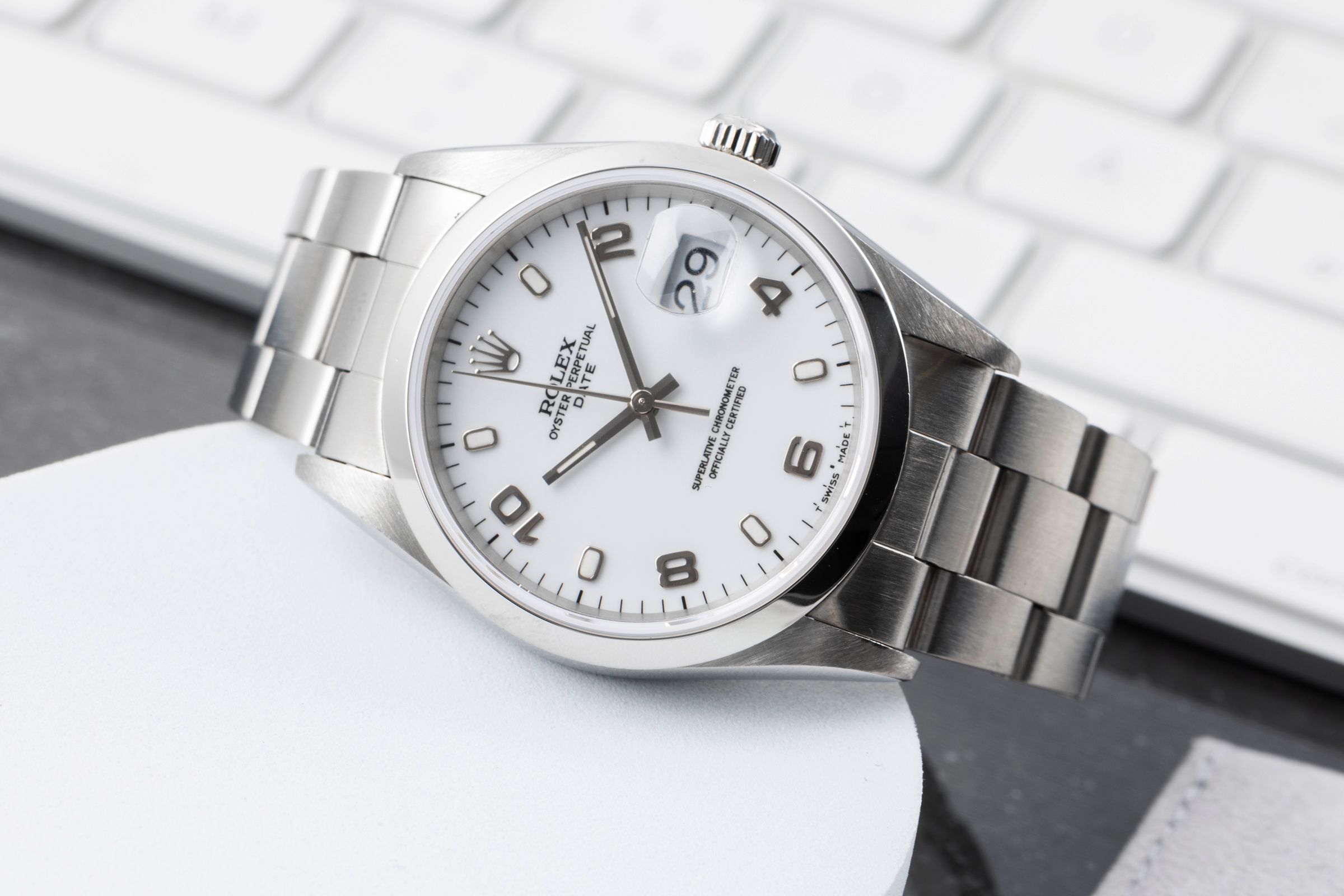 Alternative title: Rolex 15200 - Oyster Perpetual Date; Rolex Date 34 White Dial Stahl Automatik Herrenuhr Ref. 15200 Papiere 1996 [2505225]