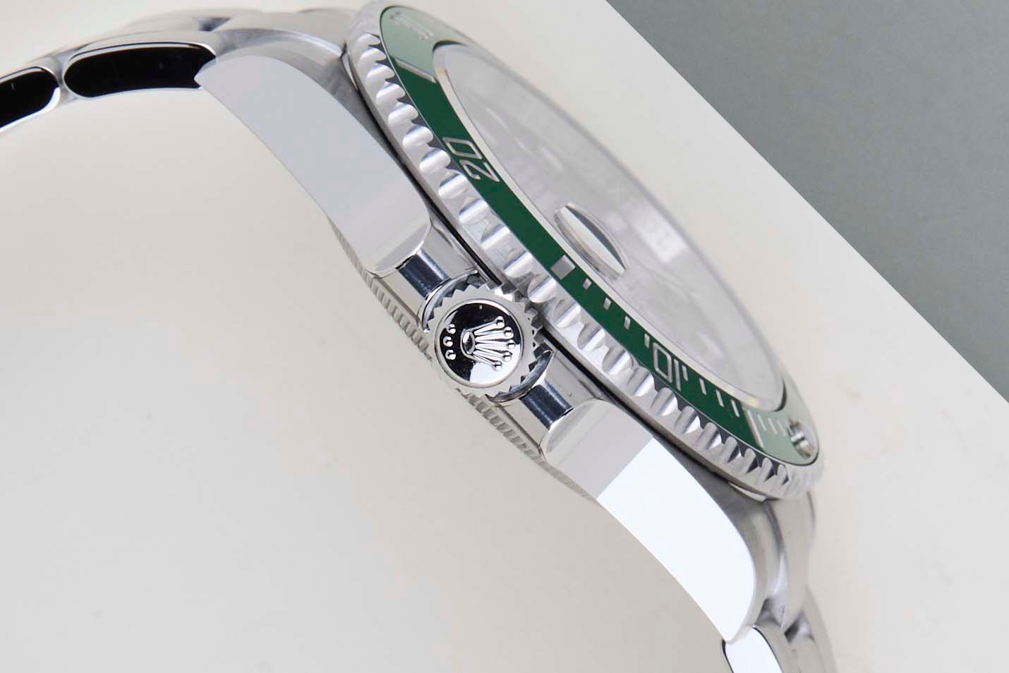 Este Rolex Submariner Date foi vendido pela primeira vez em Agosto de 2025. O relógio é totalmente feito de aço inoxidável. A Rolex utiliza 904L em seus relógios de aço, que é uma superliga extremamente resistente e altamente polida. Esta geração do Submariner é equipada com um mostrador Chromalight, que pode ser reconhecido pela luminescência azul. Este Submariner Date vem com um mostrador preto e bezel verde, que pode ser derivado da referência 126610LV, Lunette Verte.