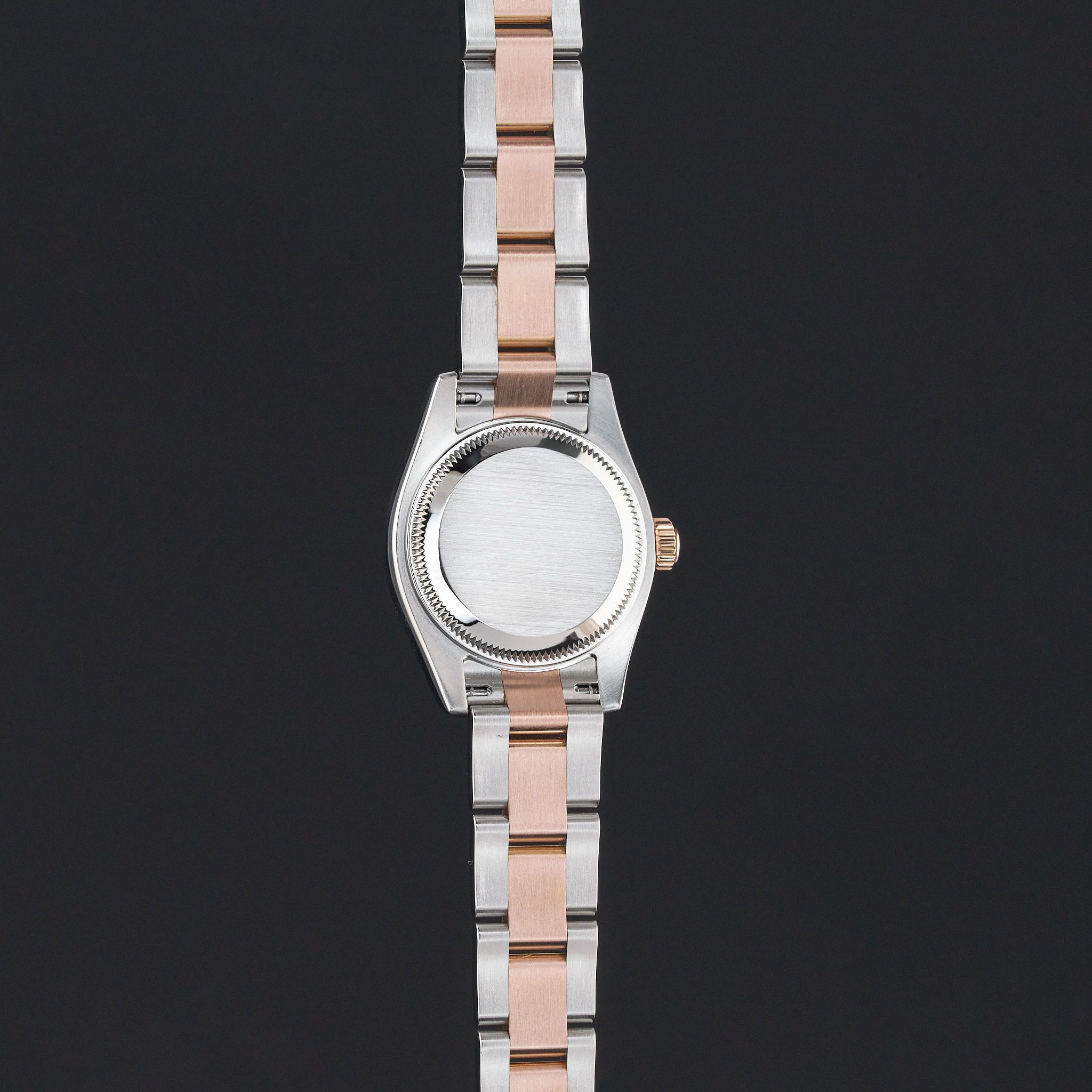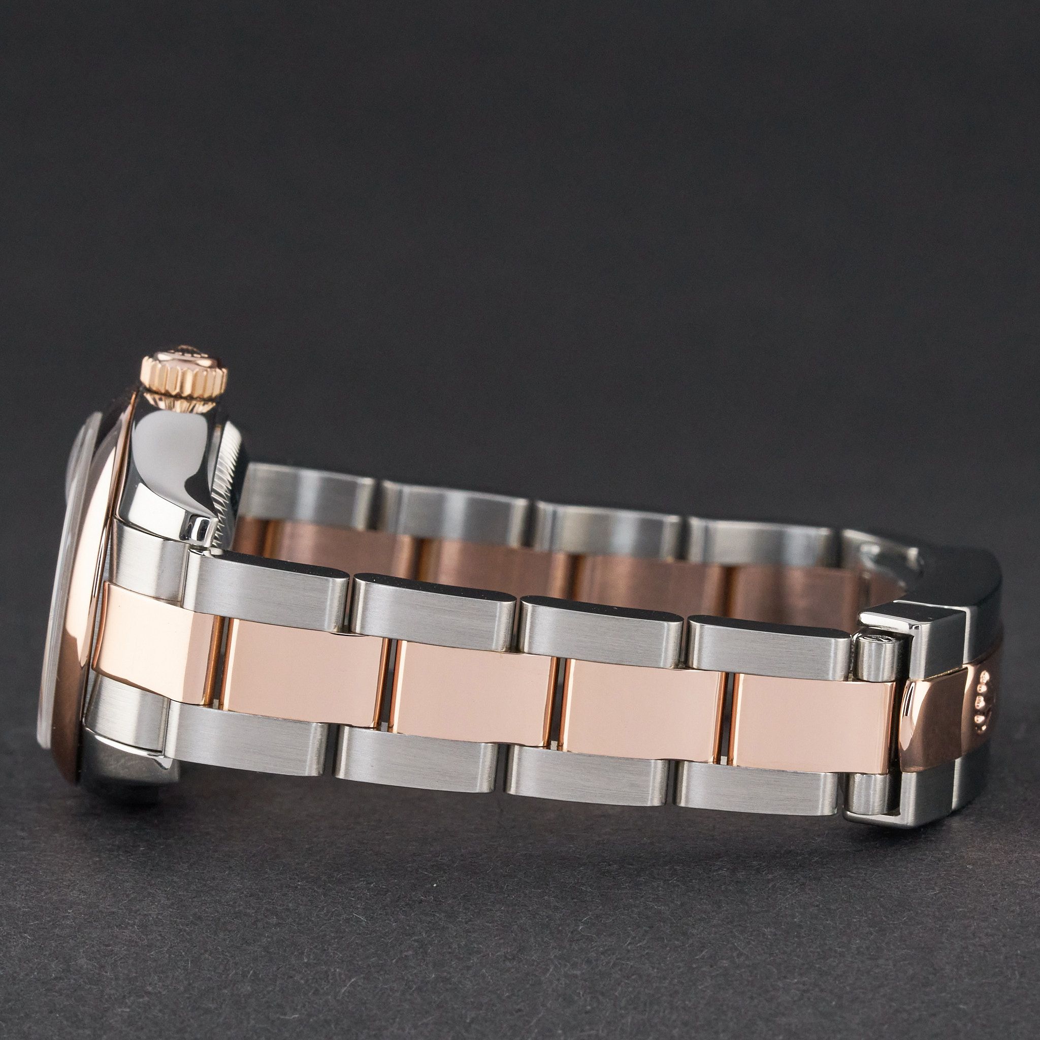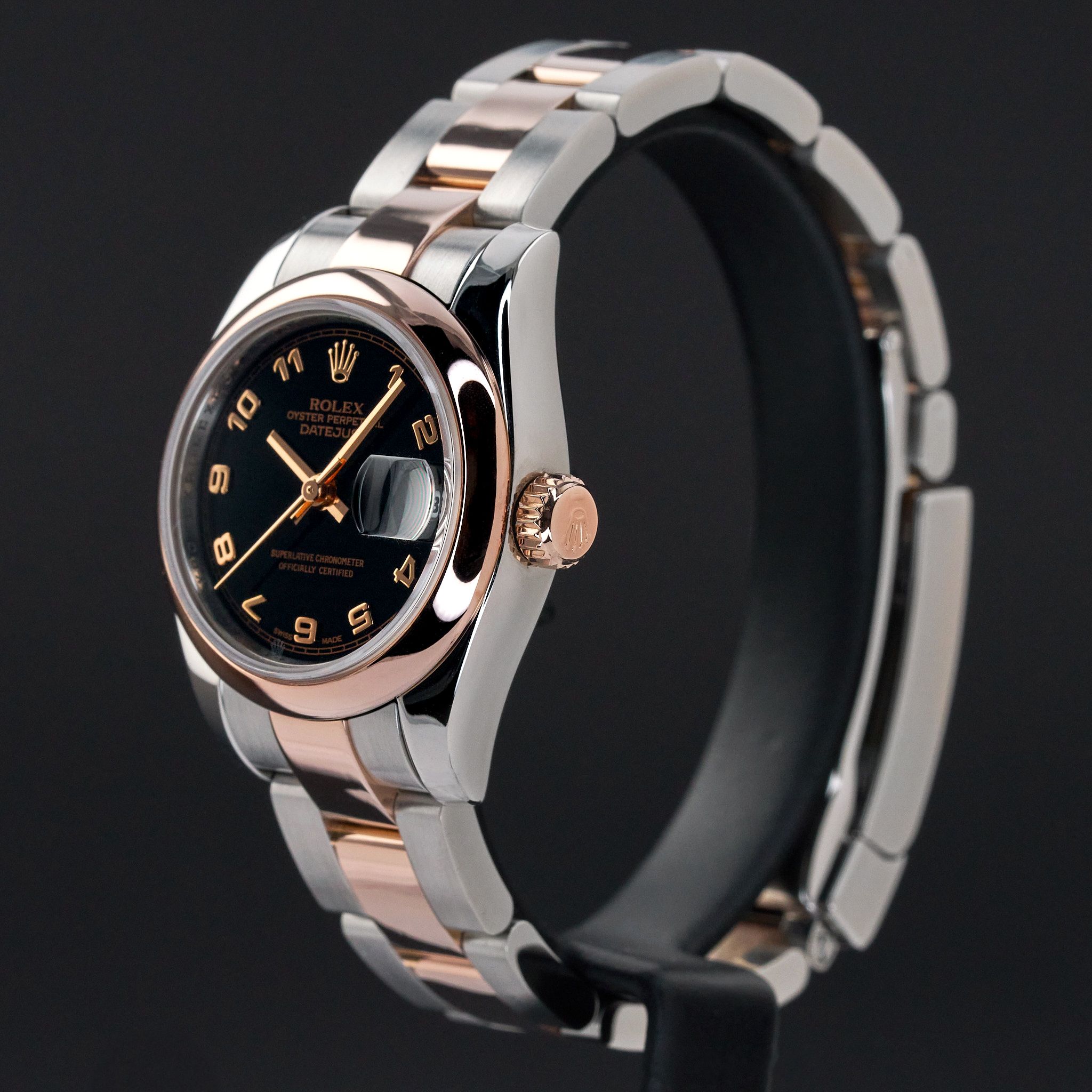This Rolex Lady-Datejust 179161 features a Black Arabic dial and is crafted from 18K rose gold and stainless steel, with a production year of 2006.Case No: D87XXXX