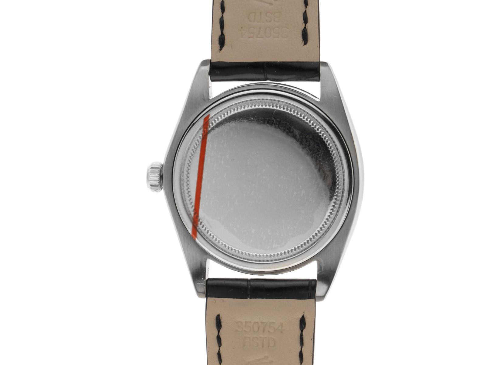 Rolex Oysterdate Precision open 6/9 Stahl Handaufzug Armband KrokolederGehäuse Edelstahl poliert und satiniert, Gehäusedurchmesser ohne Krone 35mm, Gehäusehöhe 10,8mm. Lünette Edelstahl geriffelt und poliert. Rolex Armband Krokoleder schwarz mit Ziernaht, Anstoßbreite 19mm, Rolex Stiftschließe Edelstahl mit Hersteller-Logo. Zifferblatt schwarz mit leichter Patina, aufgesetzten gelbgoldenen Indexen und gelbgoldenen Zeigern, leichte Patina. Uhrwerk Handaufzug, Rolex Manufakturkaliber 1225 mit 17 Edelsteinen. Anzeige von Stunde, Minute und Sekunde über Zeiger aus der Mitte, Datumsanzeige unter Glaslupe bei 3 Uhr, open 6/9 (offene 6 und 9 in der Datumsanzeige). Plexiglas. Krone verschraubbar mit Hersteller-Logo. Boden Edelstahl verschraubt. Gewicht der Uhr inklusive Armband 46g. Referenznummer: 6694, Baujahr: 1971, Gehäusenummer: 5492XXX, ID: P191643201125H-5200, Artikelnummer: 10000083225. Mit Gangkontrolle und kompletter äußerlicher Aufarbeitung von November 2025. Original Rolex Box und Übersetzungsheft, Ledermäppchen sowie Watchregister Auszug von November 2025, The Watch Register Zertifikat / ohne Eintrag (Internationale Datenbank für verlorene oder gestohlene Uhren). Superschnäppchen, Kapitalanlage mit Wertsteigerungspotential, extrem seltenes Sammlerstück. Sehr guter Zustand. Lieferzeit sofort.