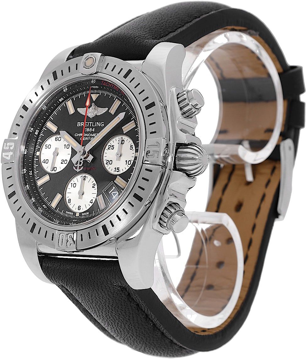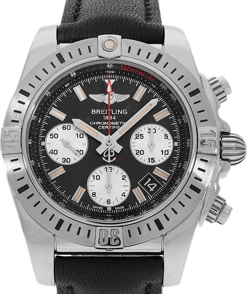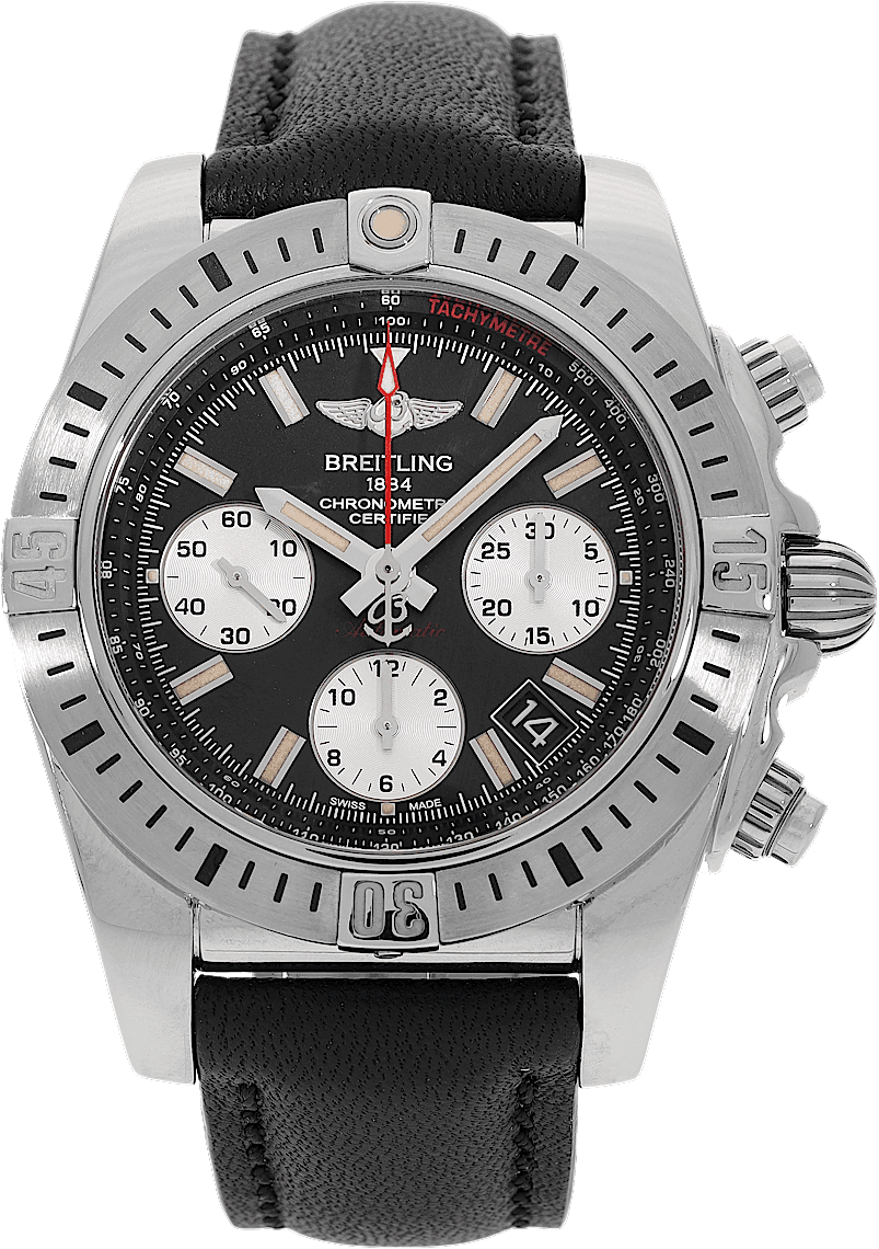 Breitling Chronomat, Reference: AB01442J.BD26.102W.A18D.1, Gender: Male, Size: 40mm, Dial color: Black, Strap material: Calf Leather, Movement: Automatic, Condition: Previously worn with some signs of usage. The movement is flawless and the case has been cleaned. watch tested to ensure full functionality. An inspection by our certified watchmakers guarantees its authenticity., Documents: Original papers, CHRONEXT Certificate