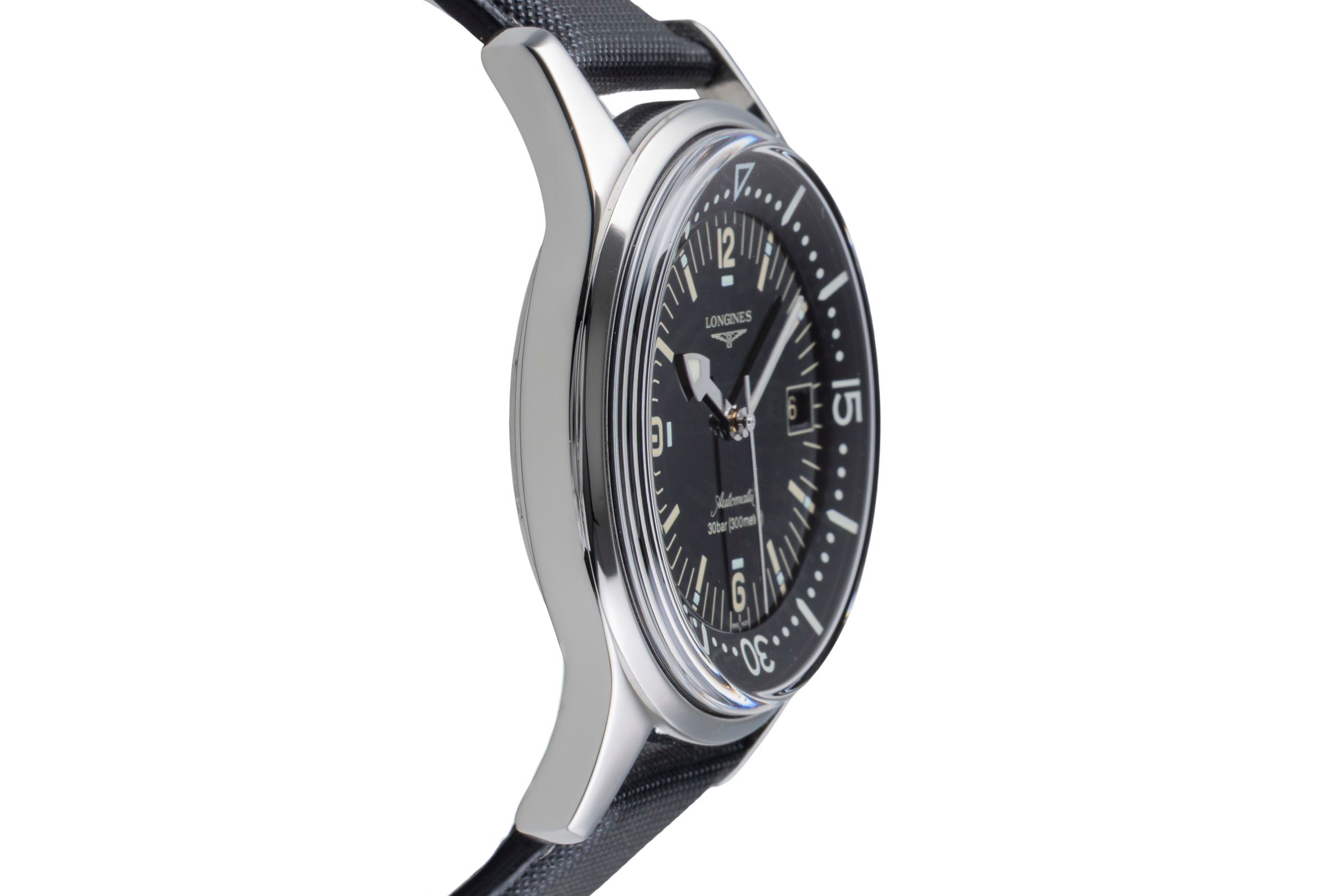 Alternative title: Longines L3.674.4.50.0 Legend Diver Date Stainless Steel / Black / Strap; Longines Legend Diver Stahl Automatik Herrenuhr Ref. L3.674.4.50.0 VP: 2550,- € [2506128]