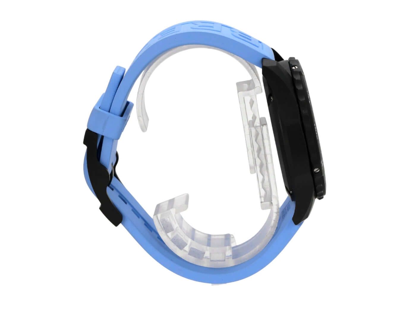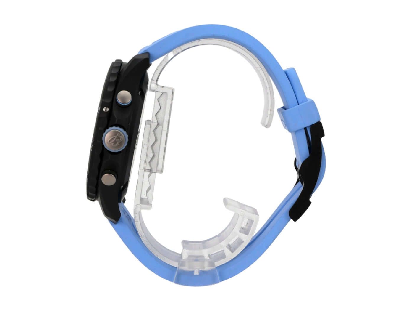 Caixa feita de Breitlight, diâmetro da caixa 44 mm, altura da caixa 12,5 mm, bezel de Breitlight rotativo em ambos os lados, pulseira de borracha azul com fivela de pino, mostrador preto com números luminosos aplicados e ponteiros luminosos, movimento de quartzo, Breitling 82, display de data, cronógrafo, cronômetro, cristal de safira com dupla camada anti-reflexo, fundo da caixa em Breitlight, resistente à água até 10 bar.