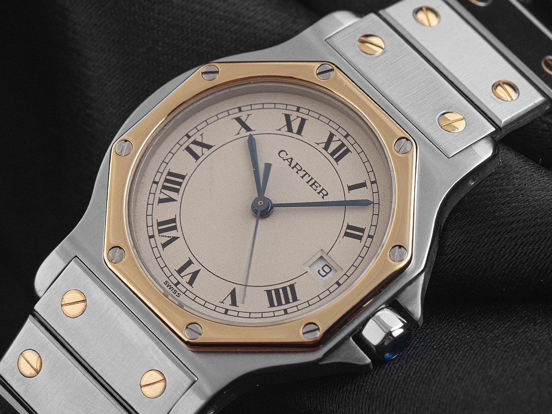 Cartier Santos Octagon GM grande modelo aço 18kt ouro amarelo quartzo bracelete aço 18kt ouro amarelo