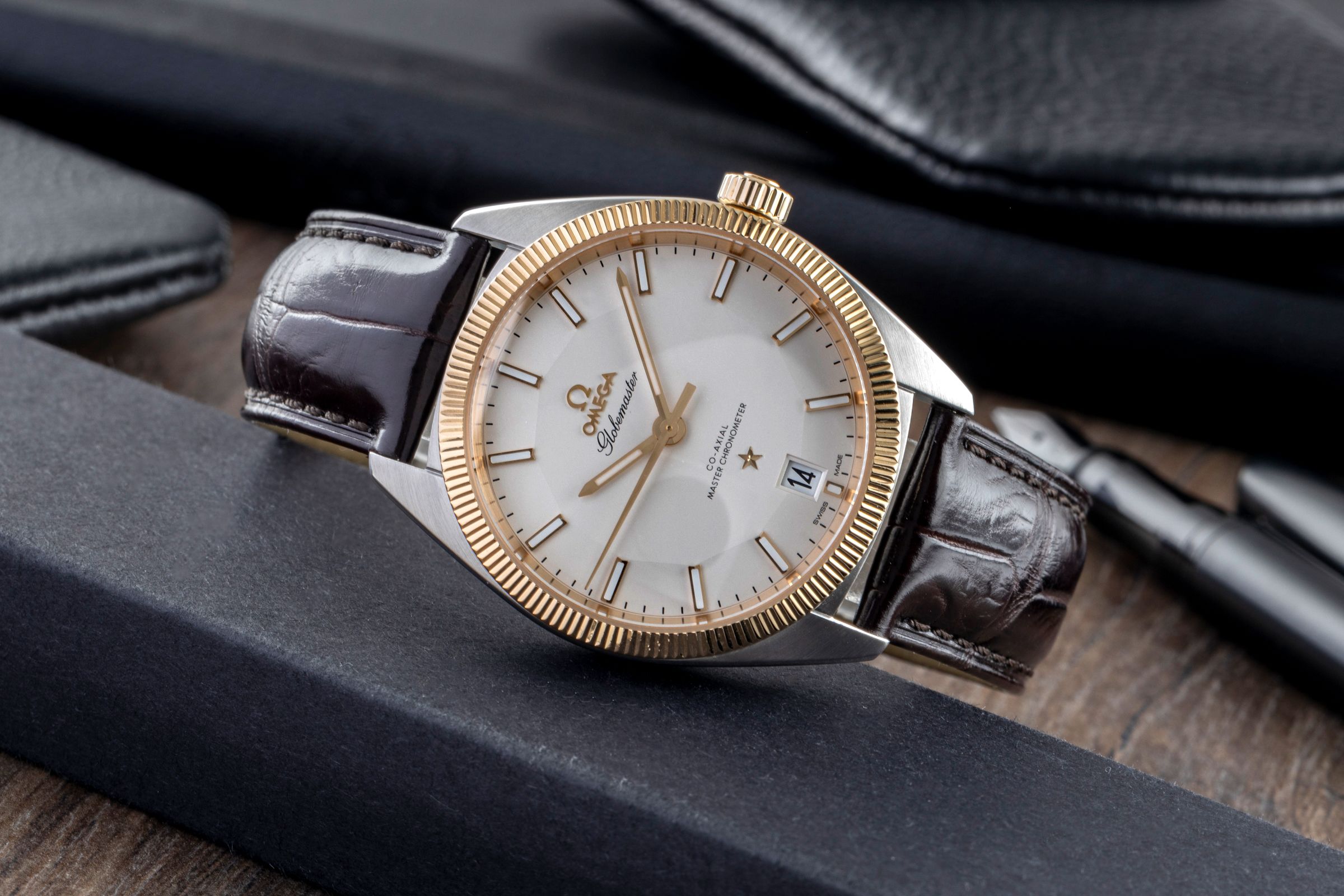 Alternative title: Omega 130.23.39.21.02.001 Globemaster Stainless Steel / Yellow Gold / Silver / Alligator; Omega Constellation Globemaster Stahl/Gold Pie Pan Ref. 130.23.39.21.02.001 [2504051]
