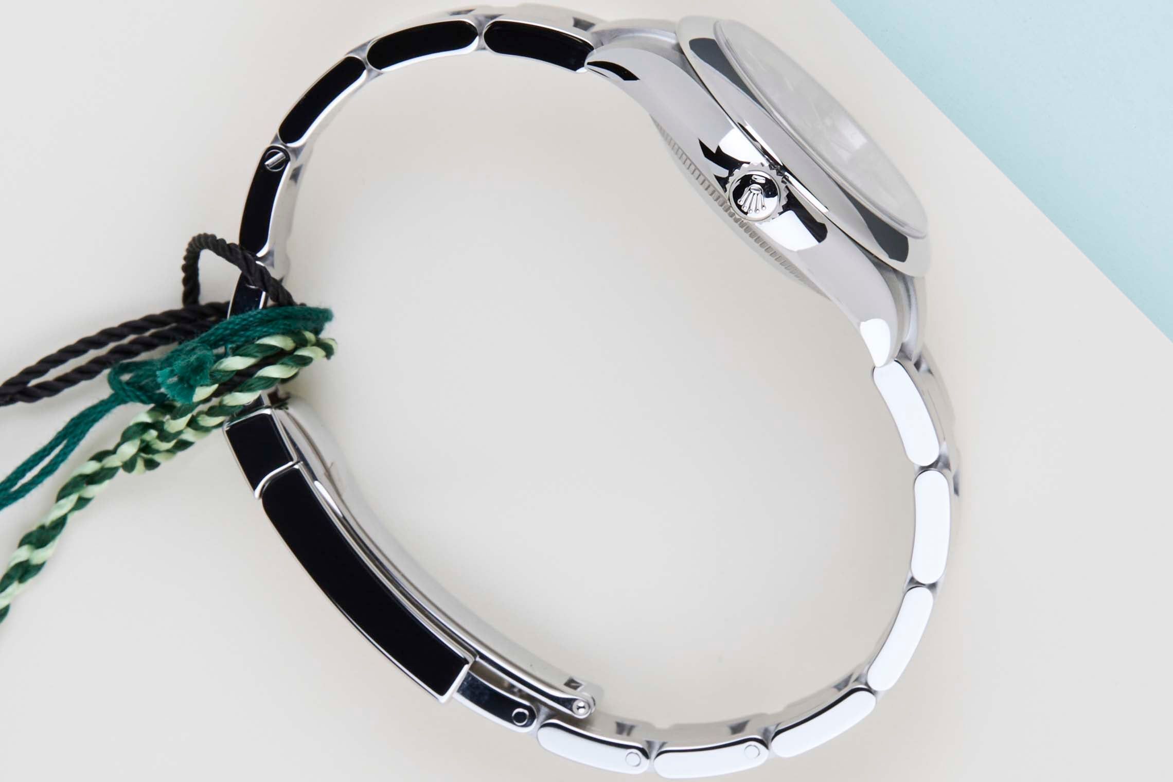 Este Rolex Oyster Perpetual 31 está em condição Novo & Sem Uso e vem com o Cartão de Garantia Rolex original e caixa. Além disso, o relógio ainda possui Garantia Rolex Mundial até Outubro de 2030.