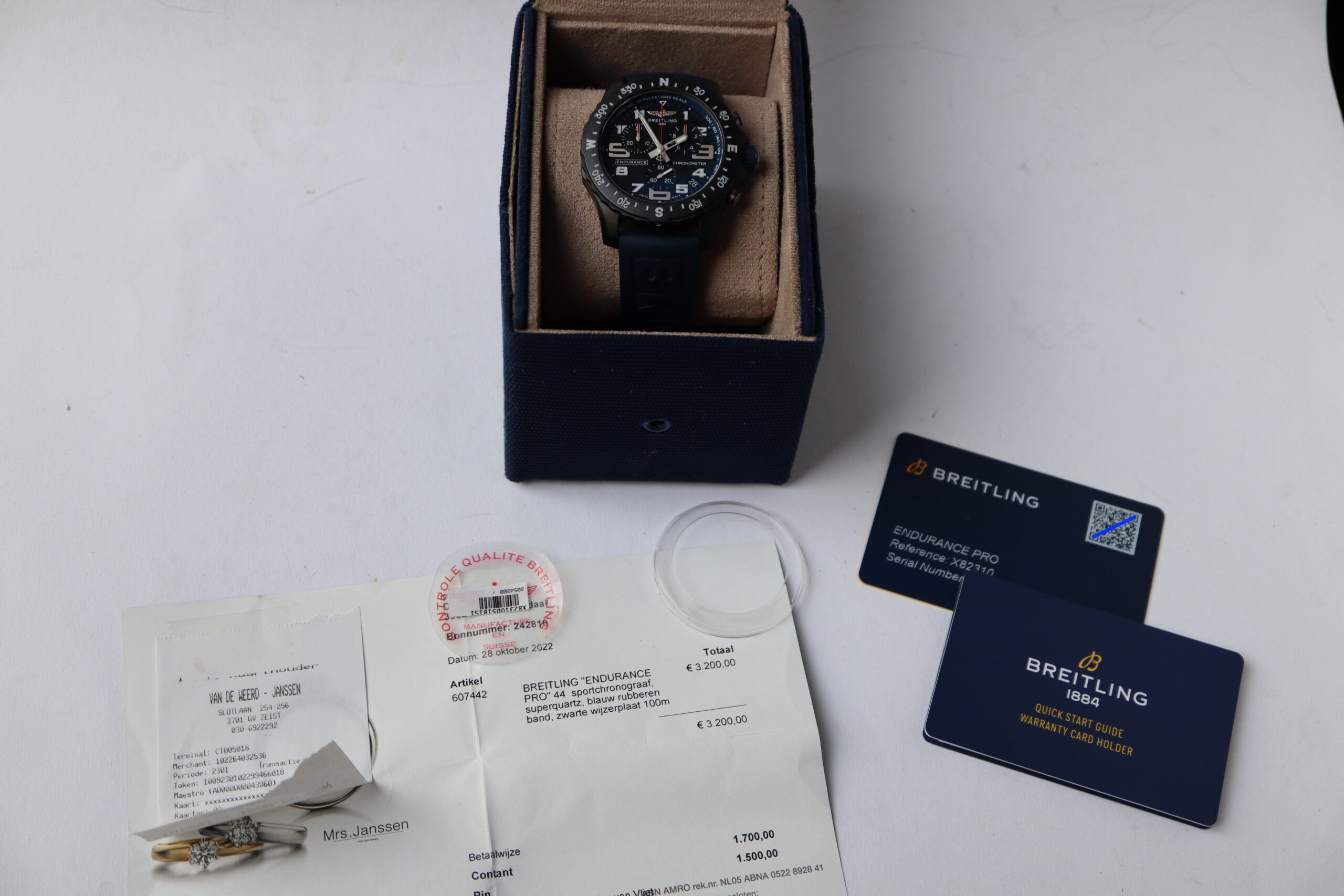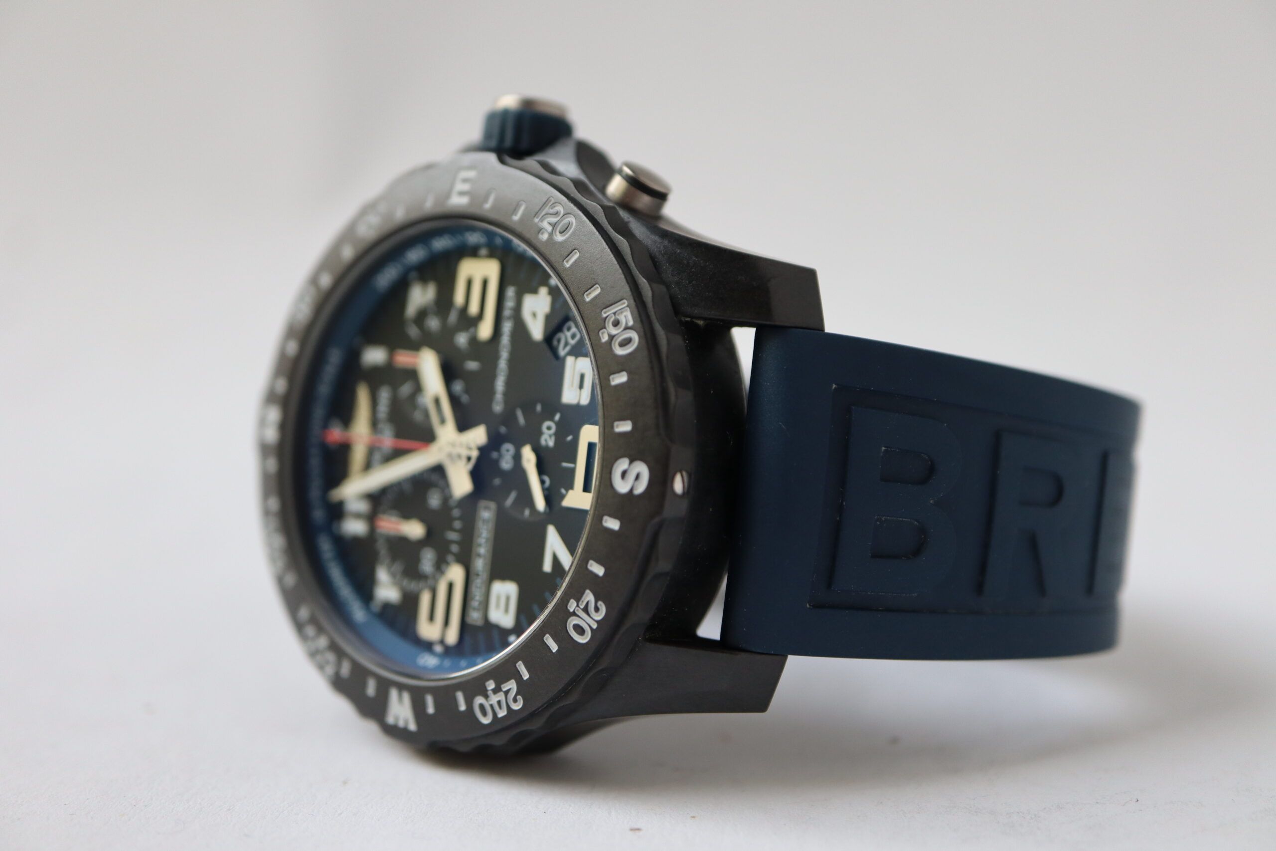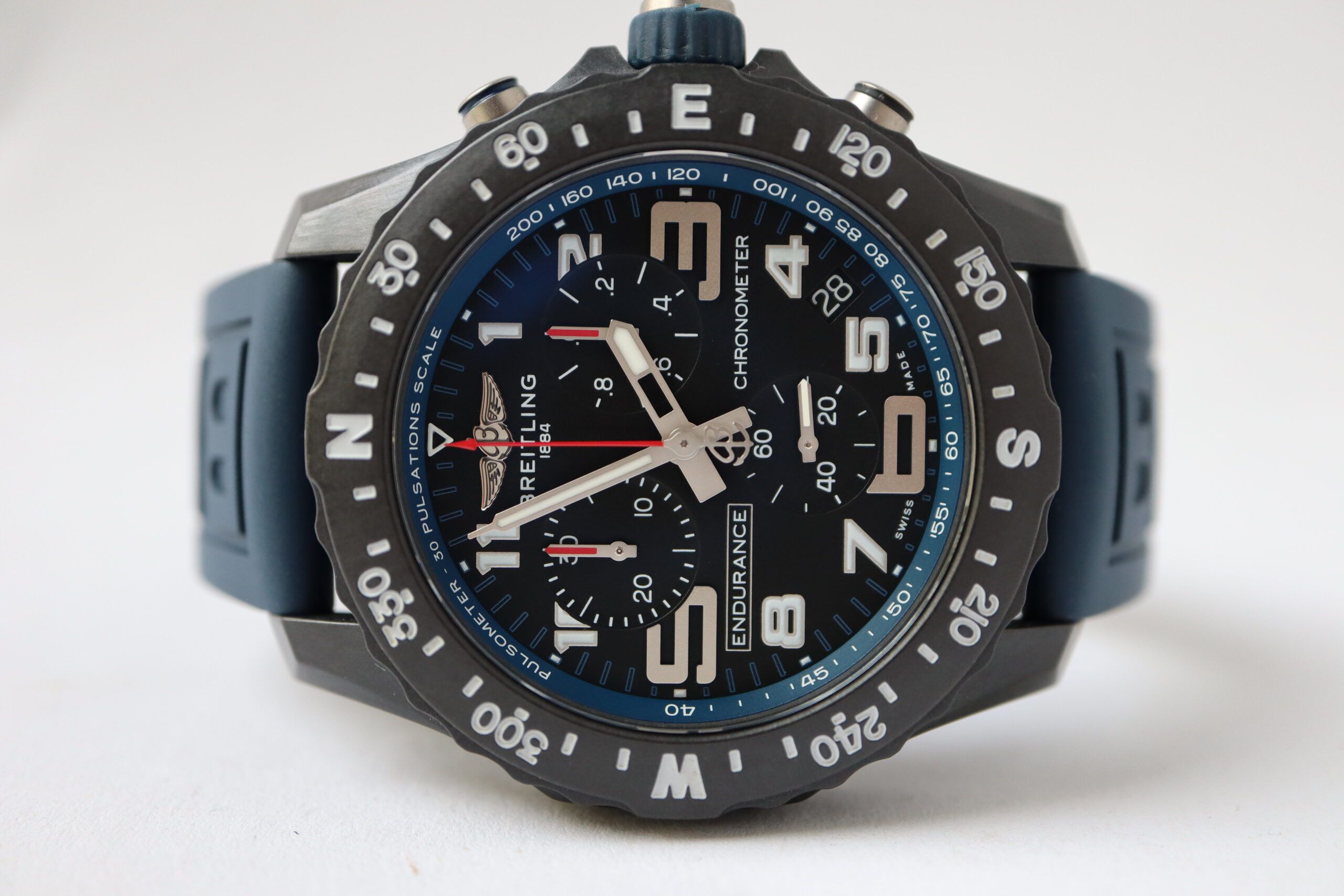 Projetado para ser tanto um relógio leve para atletas quanto um cronógrafo esportivo casual para o dia a dia, o Endurance Pro combina perfeitamente tecnologia inovadora com um design vibrante para produzir o relógio athleisure definitivo. Criado para homens e mulheres cujas vidas ativas unem uma mentalidade profissional a um estilo de vida esportivo, o Endurance Pro está à altura dos desafios de um treino rigoroso, mas é elegante o suficiente para o uso diário. O Endurance Pro apresenta uma caixa ultra-leve em Breitlight®, um material 3,3 vezes mais leve que o titânio e 5,8 vezes mais leve que o aço inoxidável. Não magnético, termicamente estável e hipoalergênico, o Breitlight® é altamente resistente a arranhões, tração e corrosão. Ele também tem uma sensação mais quente que o metal e um efeito levemente texturizado, acentuando a originalidade do design. Exclusivo da Breitling, o material é 100% fabricado na Suíça. Disponível em 44 mm ou 38 mm, o Endurance Pro é oferecido aos atletas com uma multitude de mostradores coloridos e pulseiras de borracha, todas compatíveis com uma fivela tipo tang em Breitlight®. Os dois tamanhos são respectivamente alimentados pelos calibres 82 e 83 da Breitling, ambos cronógrafos SuperQuartz™ certificados pelo COSC, oferecendo precisão excepcional.