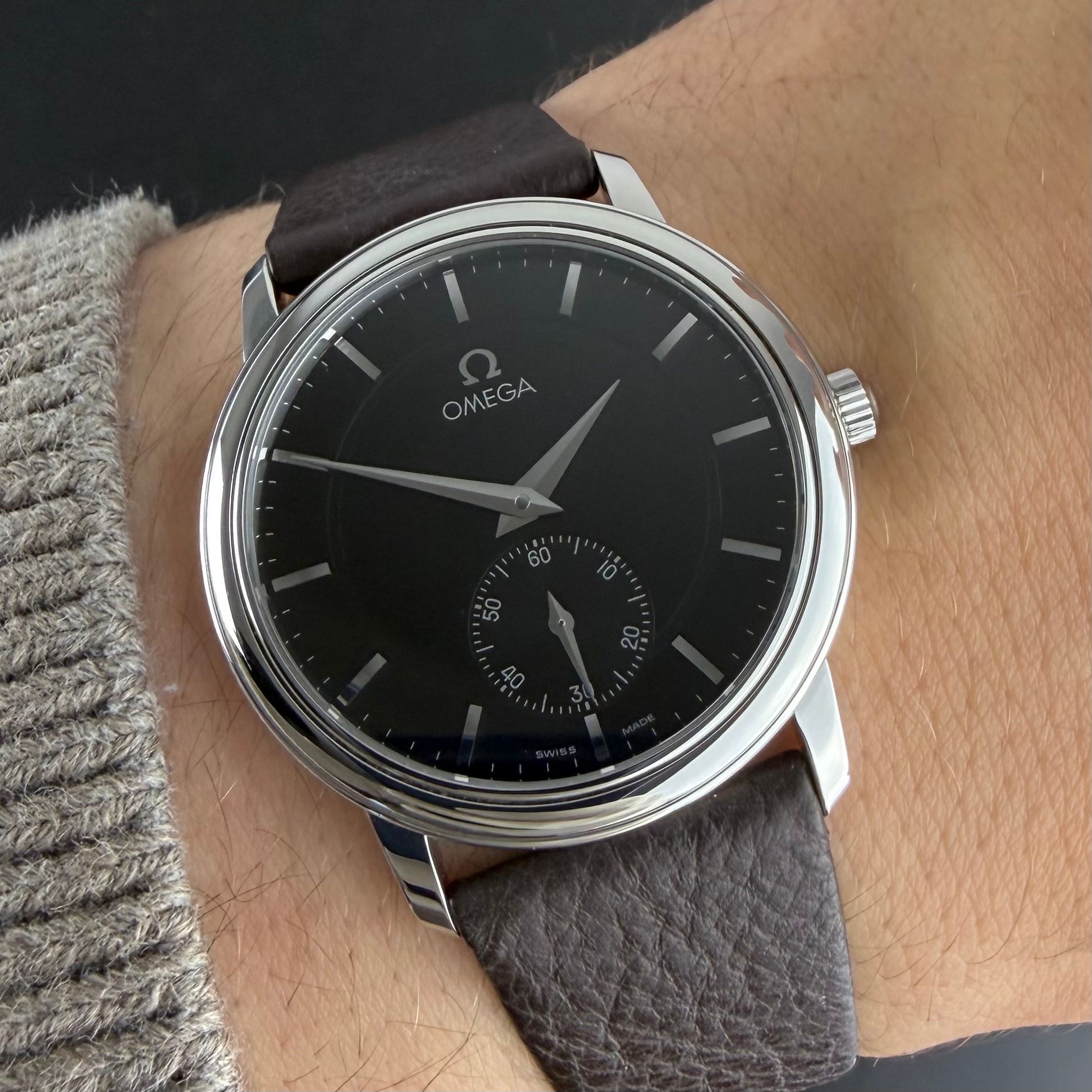 This vintage Omega De Ville Prestige, produced in 1993, remains in impeccable condition with barely any wear. Its dial is untouched, and the movement was serviced in November 2025, now running and functioning excellently. The watch features a sleek design with a thickness of just 6,4mm. It is fitted with a brown calf-feather strap in a non-padded, tapered design to complement the elegant dress style. The watch is entirely original apart from the freshly replaced strap, and its overall condition is excellent, near mint.Year of production: 1993