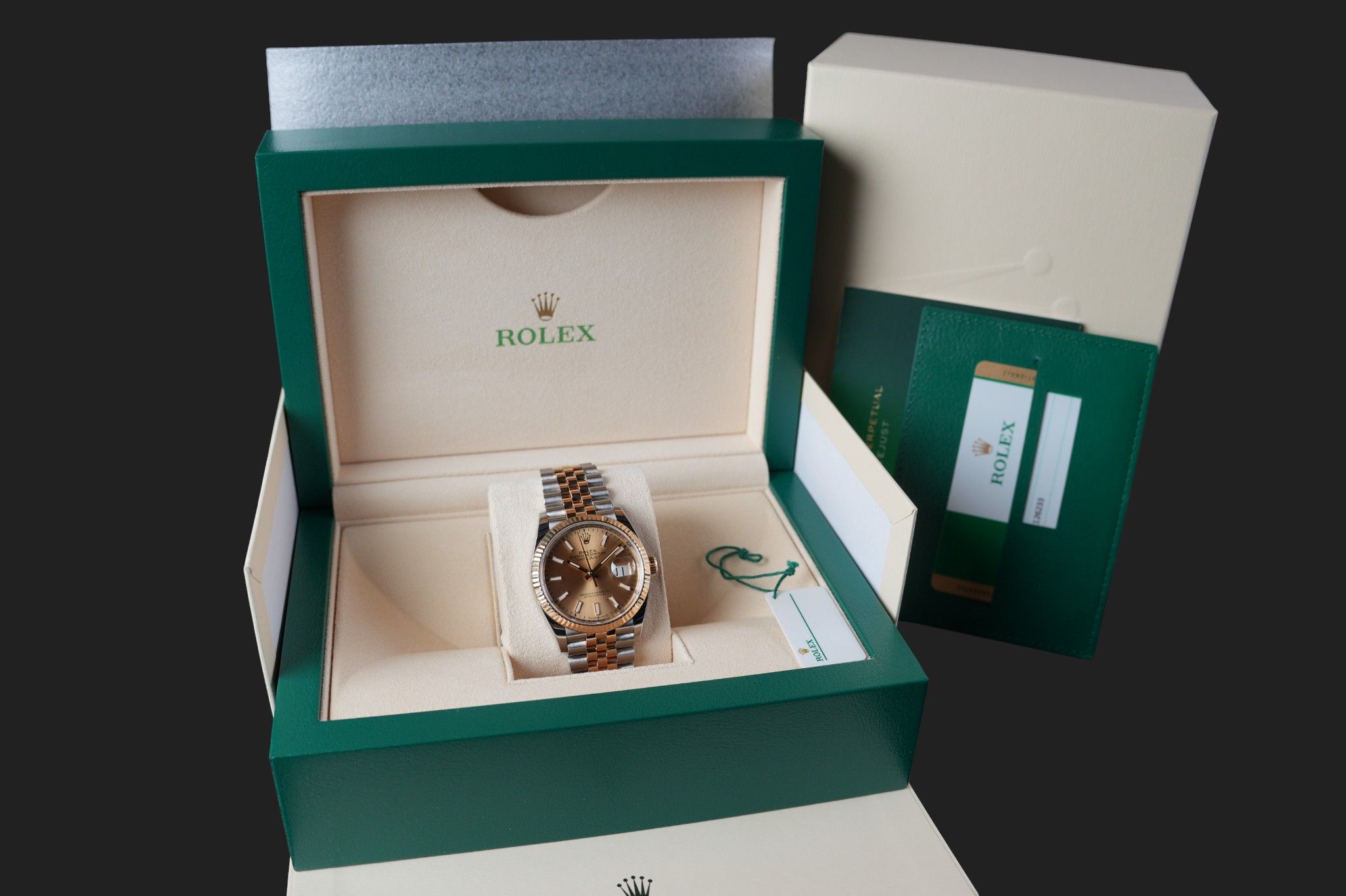 Dial colour is champagne.Originally sold by Rolex 12/2019, LC838 (China).