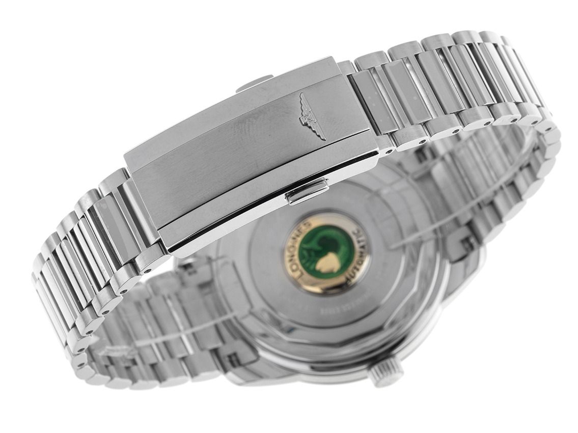 Caixa de aço inoxidável polido, diâmetro da caixa sem coroa 40mm, altura da caixa 11,5mm. Bezel de aço inoxidável liso e polido. Pulseira de aço inoxidável polido e acetinado, fecho de segurança dobrável em aço inoxidável com logotipo do fabricante. Mostrador preto lacado com índices em rosé e ponteiros em rosé. Movimento automático, calibre Longines L888, reserva de marcha de aproximadamente 72 horas, indicação de horas, minutos e segundos através de ponteiros centrais. Vidro de safira resistente a riscos. Coroa estriada com logotipo do fabricante. Fundo de aço inoxidável rosqueado e gravado. Peso do relógio incluindo a pulseira 131g, comprimento da pulseira incluindo a caixa 210mm. Número de referência: L1.650.4.52.6, ID: ST610239601125RE-3300, número do artigo: 10000083523. Caixa original Longines com embalagem externa e documentos de garantia de 2025, além de descrição, Full Set. Sem uso. Prazo de entrega imediato.