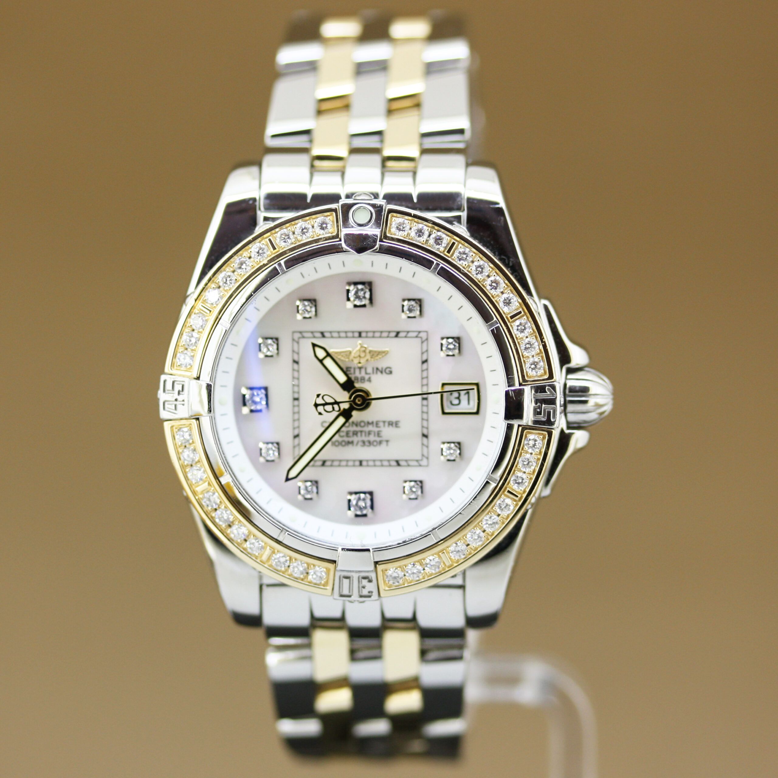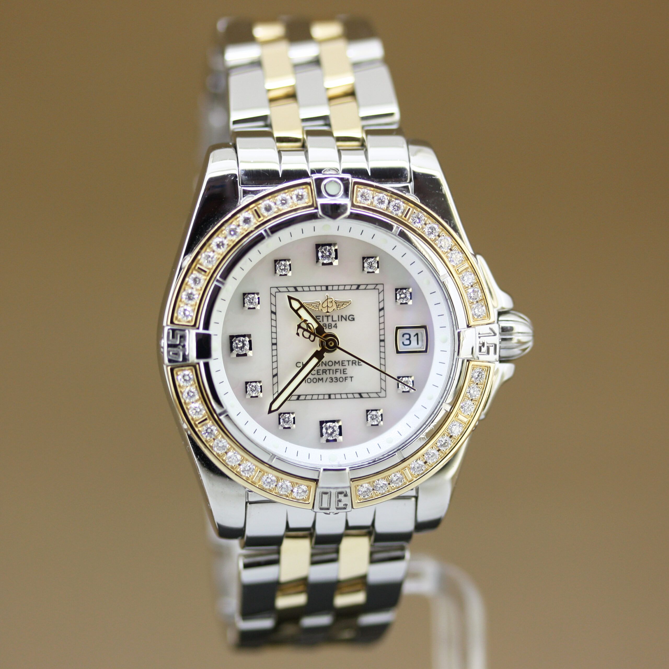 For sale: a Breitling Galactic 32 Cockpit Lady, reference D71356, in very good condition.This elegant ladies’ timepiece features a gold/steel case and a factory-set diamond bezel, giving the watch a luxurious and refined presence.