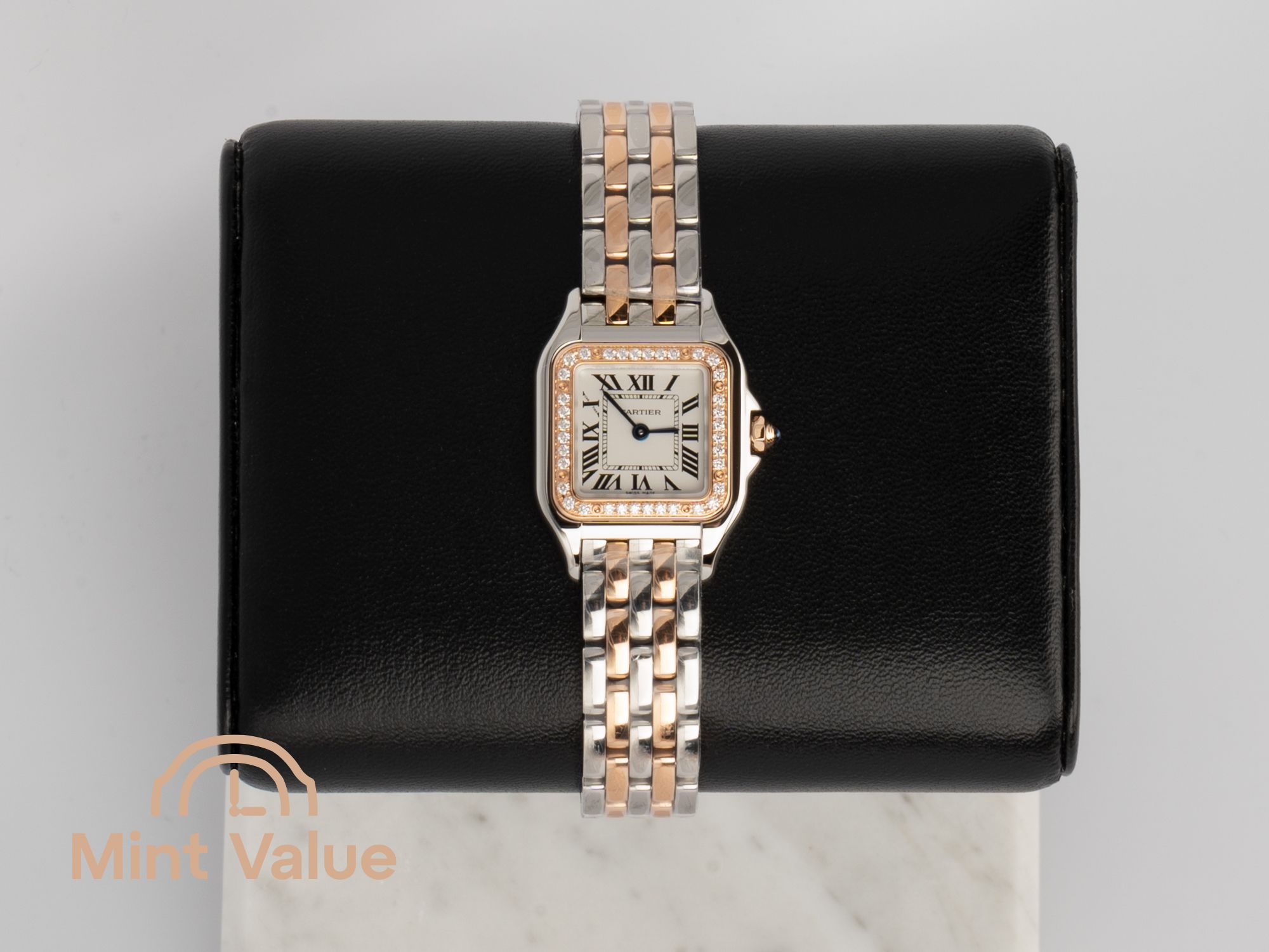 Two-tone Cartier Panthère models with diamond bezels remain among the most desirable in the brand’s modern catalogue. The W3PN0014, with its compact proportions and feminine refinement, holds enduring value — a symbol of lasting sophistication and a smart addition to any curated collection.