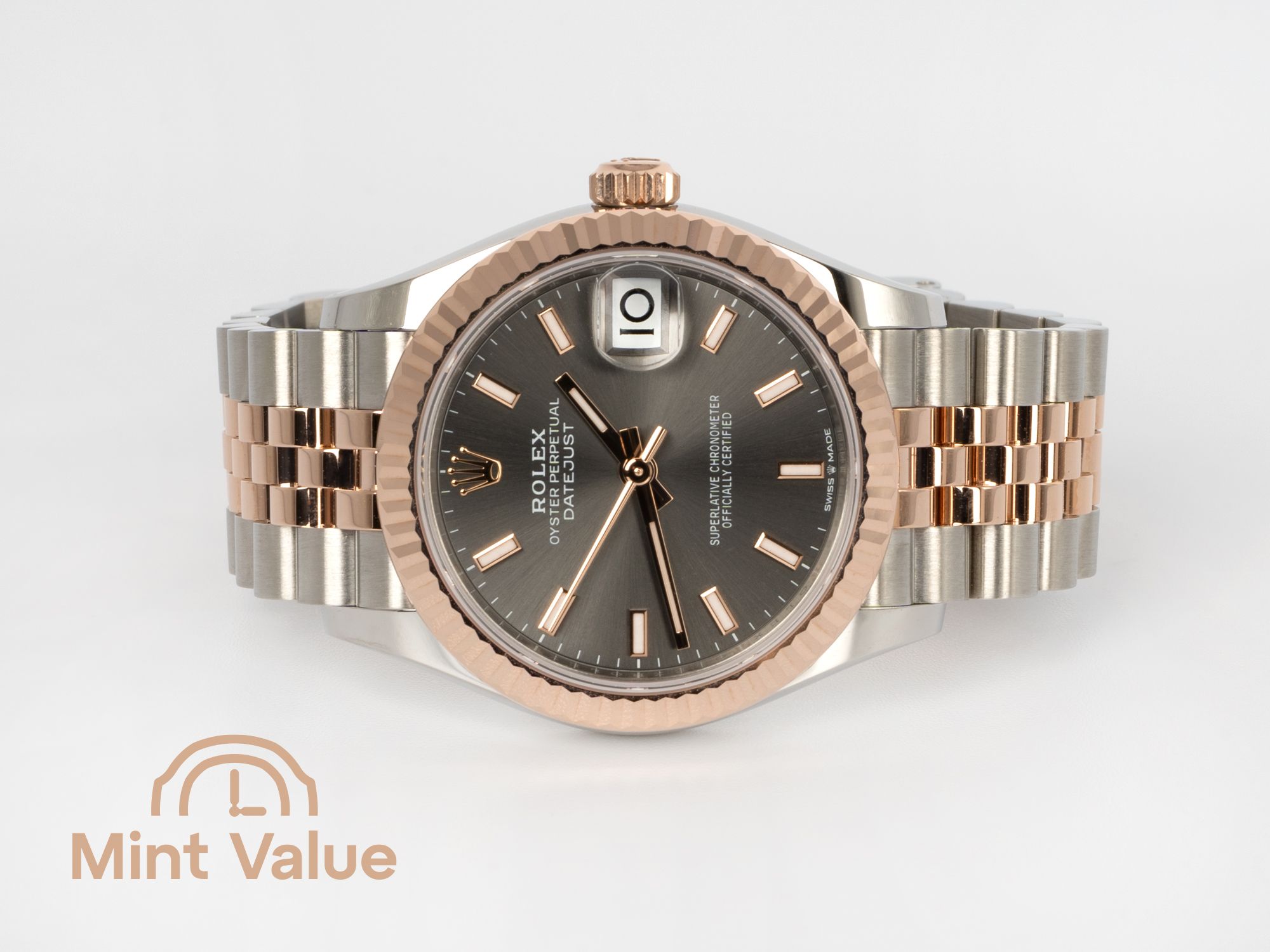 Rolesor (steel + Everose) Datejusts maintain excellent long-term value, and the Slate dial configurations have shown especially strong demand on the secondary market due to their versatility and relatively limited production compared to more common champagne or silver options. The 278271 remains a safe, steady performer for collectors seeking both wearability and value stability.