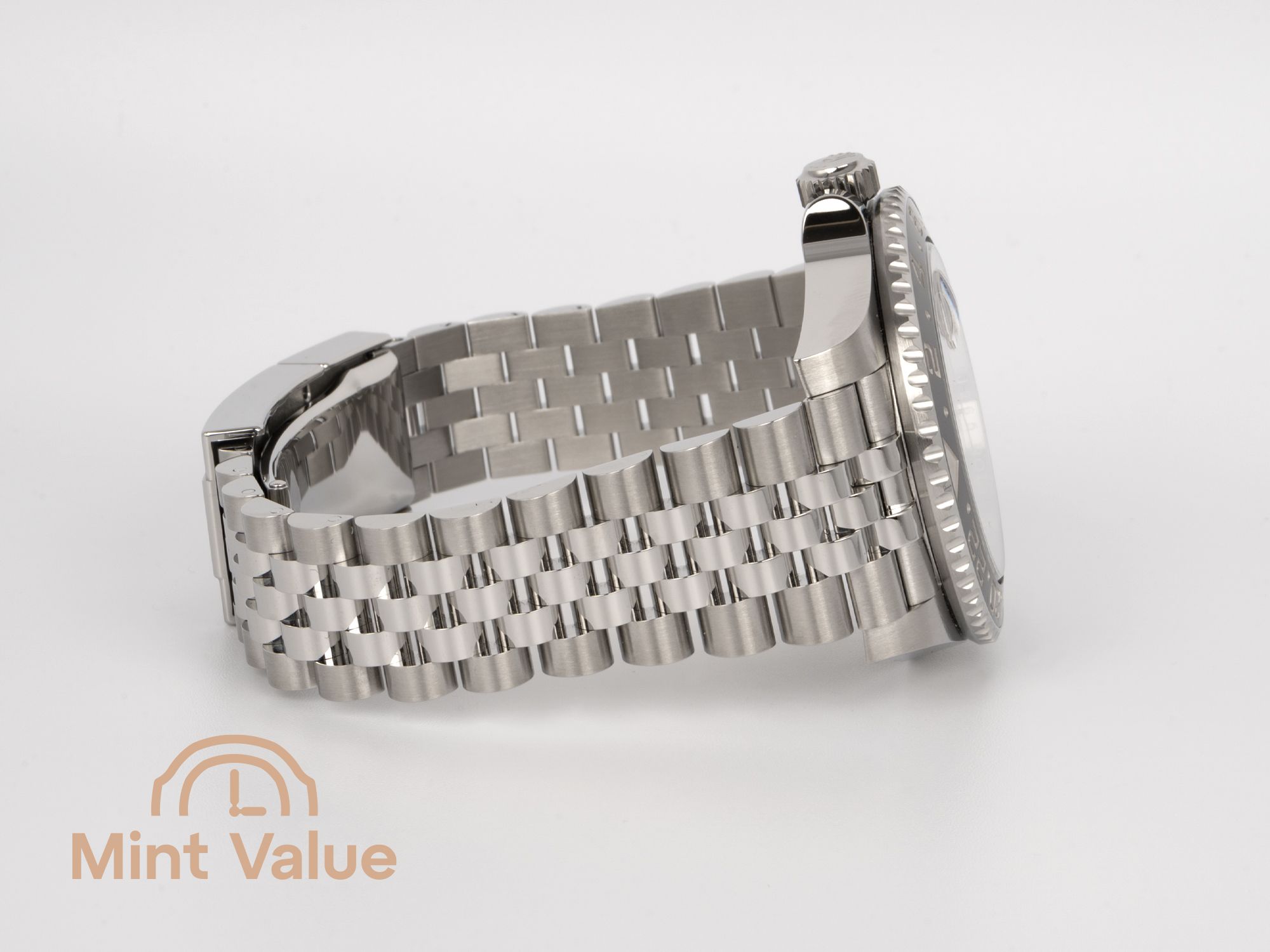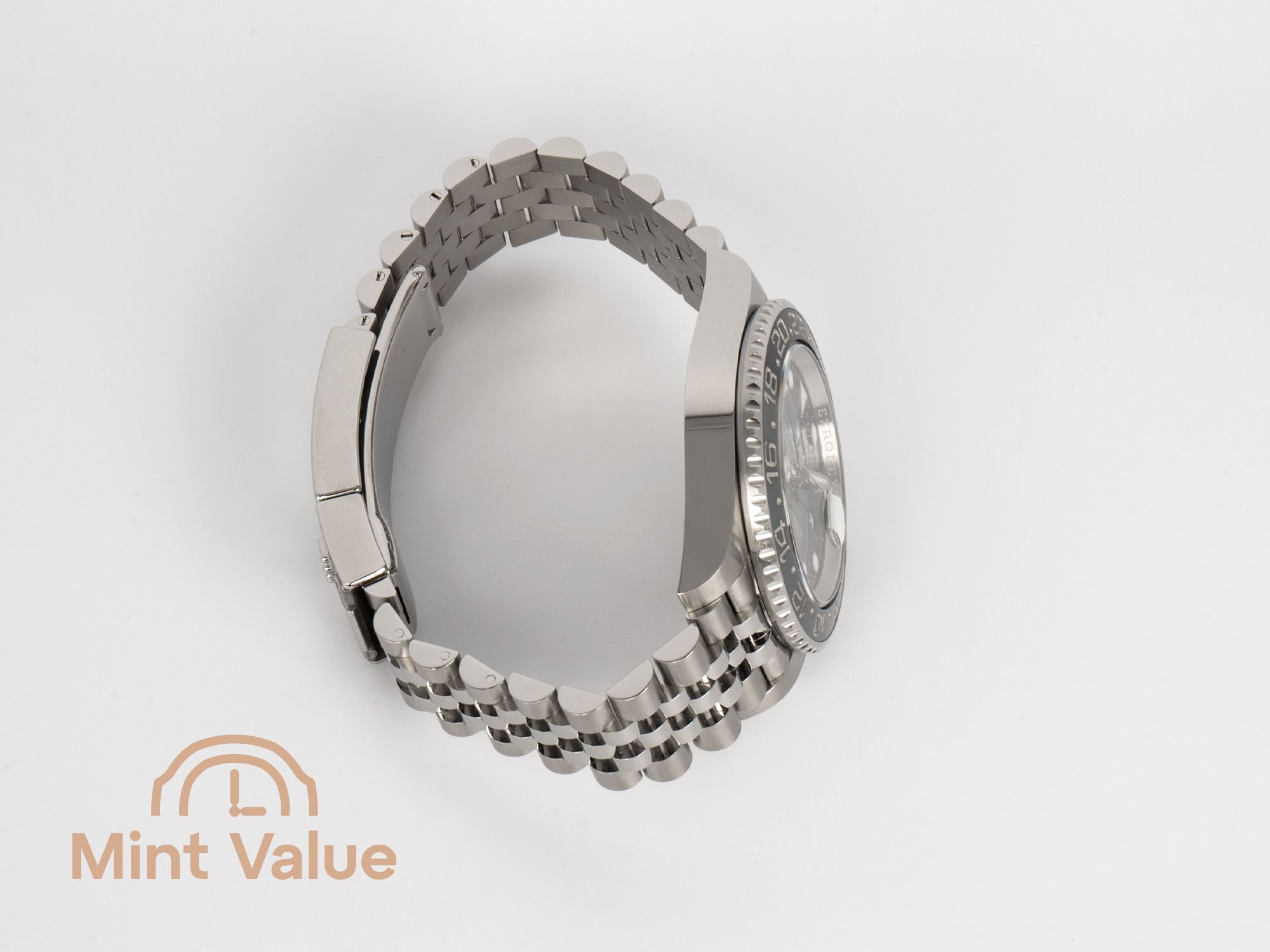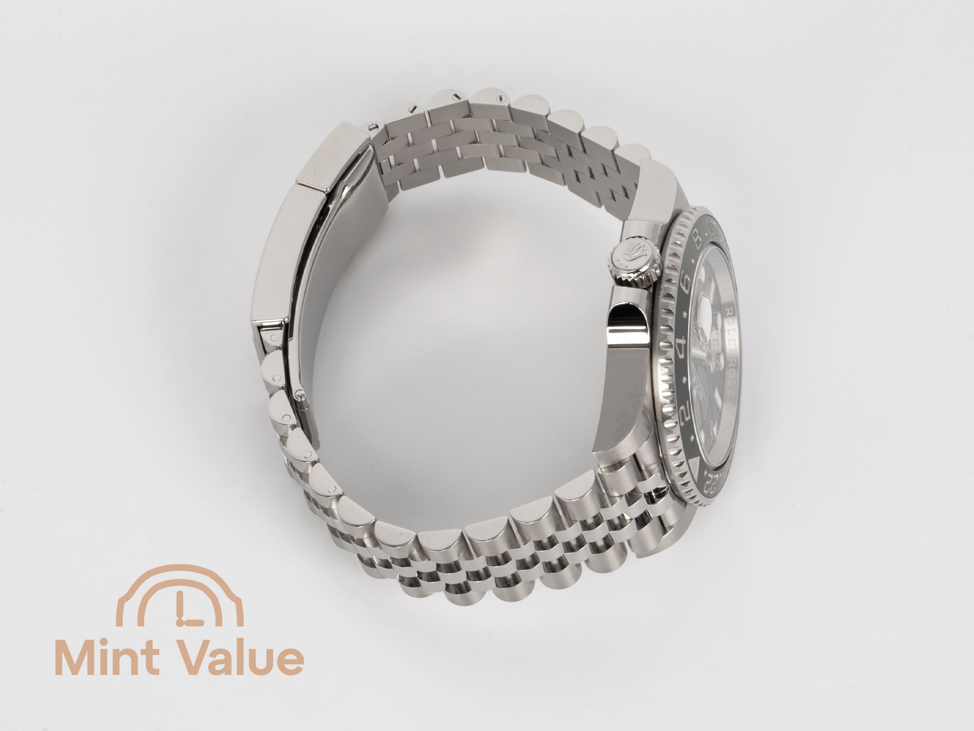 recognized among collectors as the “Bruce Wayne” for its refined black-and-grey Cerachrom bezel, marries travel-watch heritage with modern understatement. The 40 mm Oystersteel case, paired with the Jubilee bracelet, anchors an aesthetic of quiet confidence — designed for those who traverse borders yet appreciate discreet elegance.