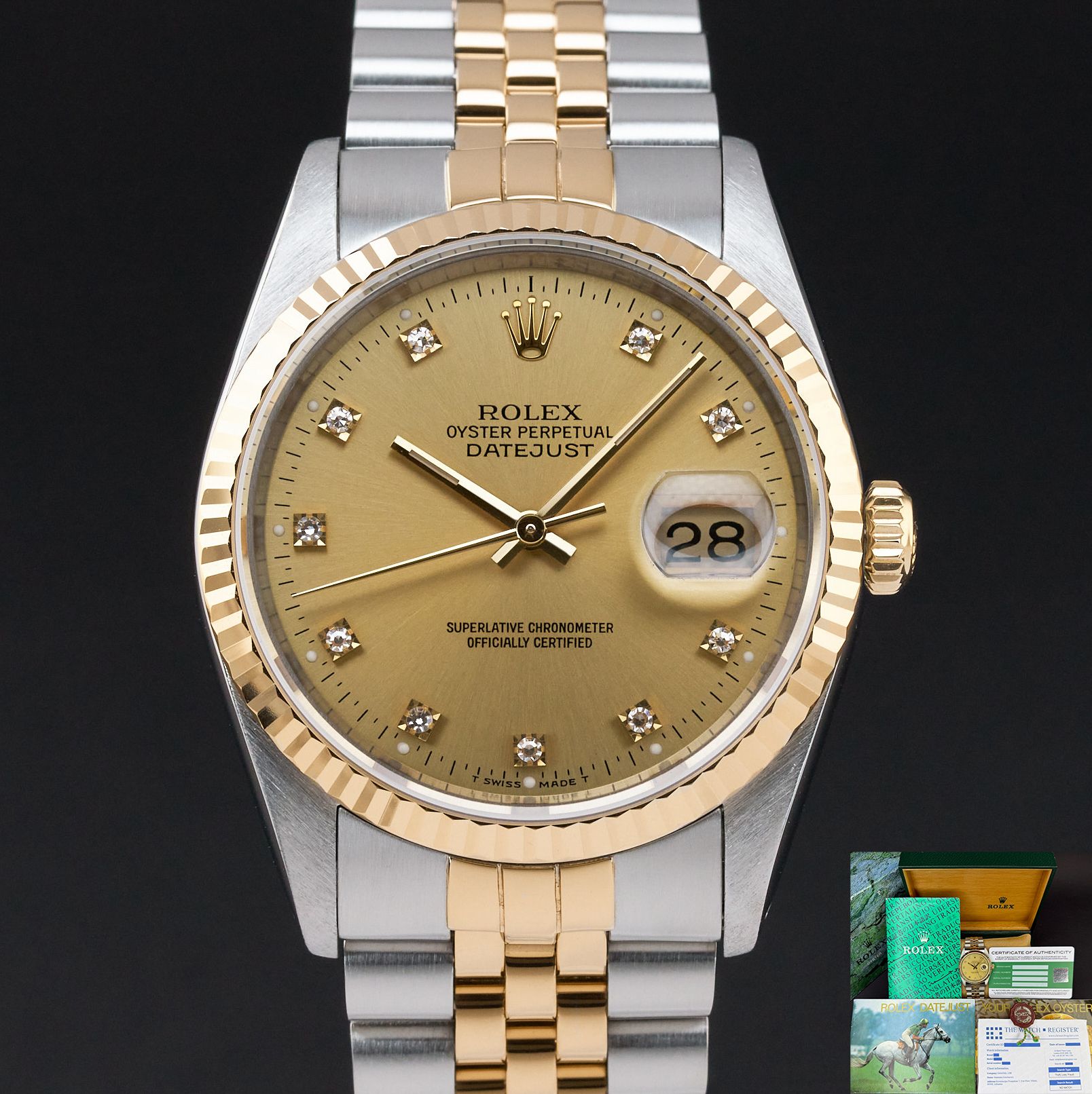 Rolex Datejust 36 Rolex Datejust, 16233, 36mm, 1991, Two-Tone, Champagne Small Diamond dial, Box 1y warranty