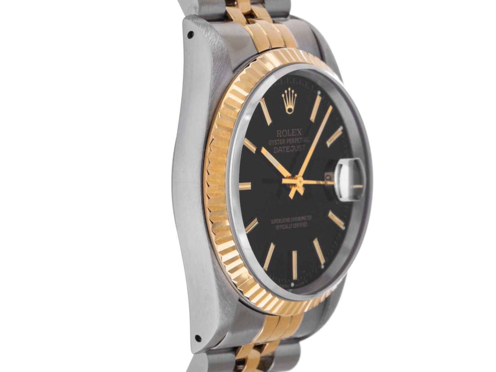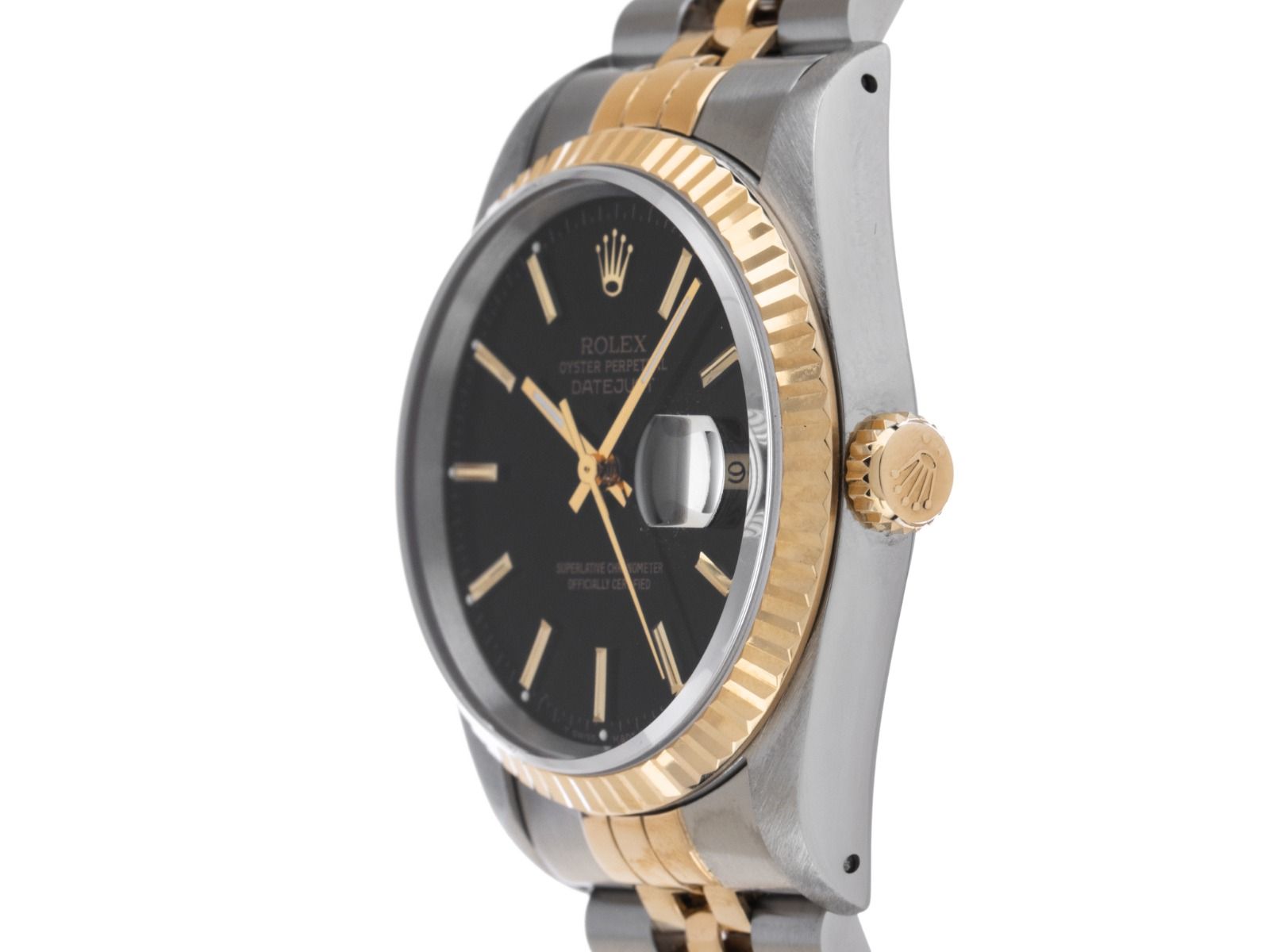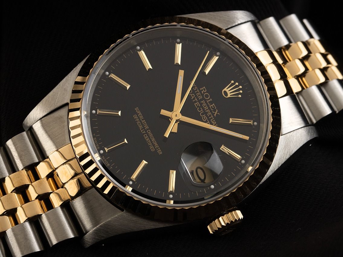 Caixa em aço polido e acetinado, diâmetro da caixa sem coroa 36mm, altura da caixa 11,9mm. Luneta em 18kt ouro amarelo estriado e polido. Pulseira Jubilé em aço / 18kt ouro amarelo polido e acetinado, fecho dobrável em aço com logotipo do fabricante. Mostrador preto com índices em ouro amarelo aplicados e ponteiros em ouro amarelo. Movimento automático, cronômetro, calibre de manufatura Rolex 3135 com 31 joias. Exibição de horas, minutos e segundos através de ponteiros centrais com parada de segundos para ajuste preciso da hora, exibição de data com ajuste rápido sob lente de aumento às 3 horas. Vidro de safira resistente a riscos. Coroa rosqueada com logotipo do fabricante. Fundo em aço rosqueado. Peso do relógio incluindo a pulseira 101g, comprimento da pulseira incluindo a caixa 180mm. Número de referência: 16233, número da caixa: C1000XXX, ano de fabricação: 1992, ID: P2023109741225H-9800, número do artigo: 10000083553. Com controle de precisão e completa restauração externa de dezembro de 2025. Caixa original da Rolex com embalagem externa, descrição, manual de tradução, selo de cronômetro Rolex e extrato do Watch Register de dezembro de 2025, Certificado do Watch Register / sem registro (Banco de dados internacional para relógios perdidos ou roubados). Investimento com potencial de valorização, peça de coleção extremamente rara. Em muito bom estado. Prazo de entrega imediato.