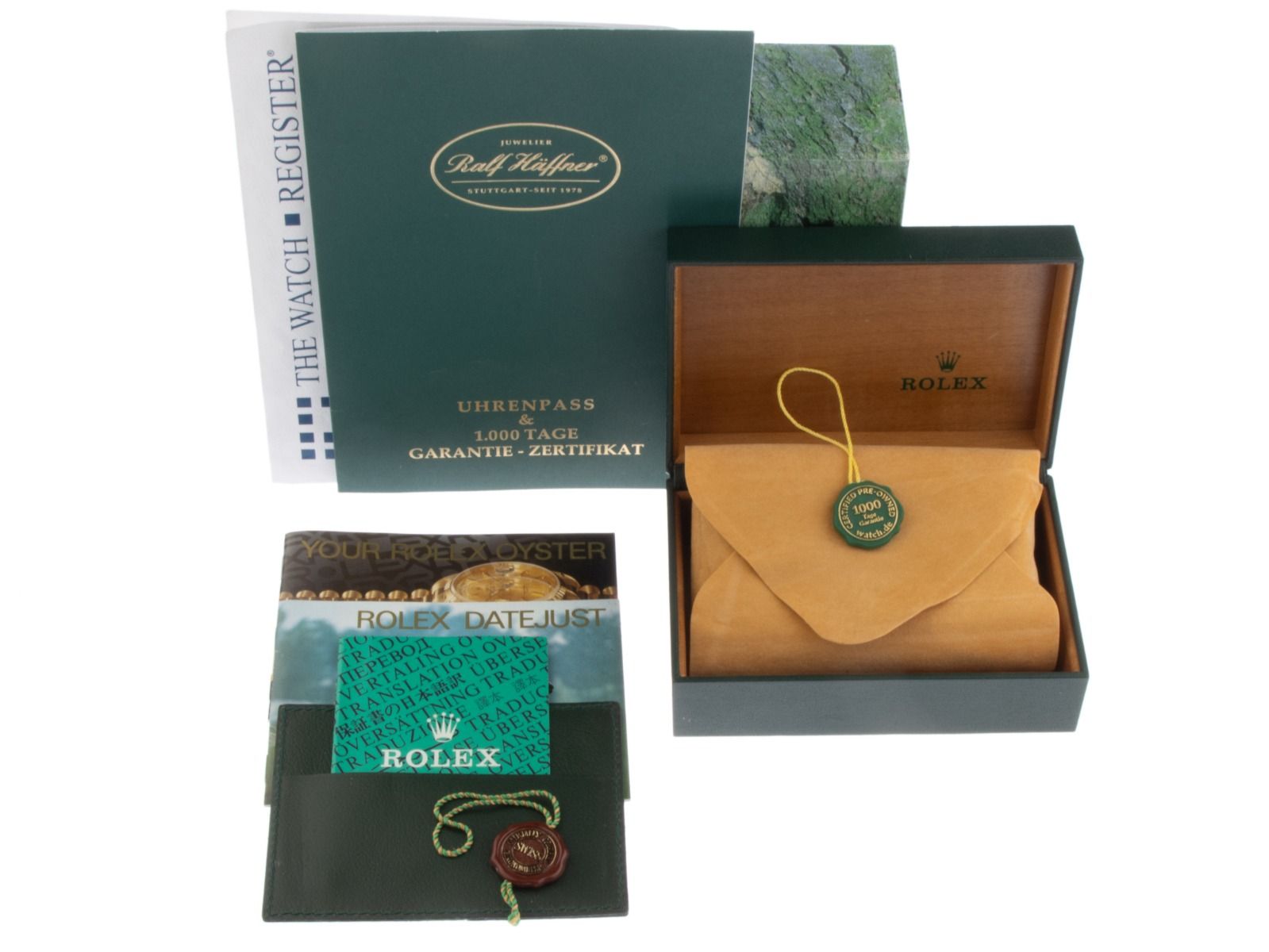 Inklusive certified pre owned Siegel / Uhrenpass mit einem Farbbild, der genauen Beschreibung sowie dem Wiederbeschaffungswert der Uhr über 9800,-€ und 1000 Tage Garantie ab Kaufdatum.