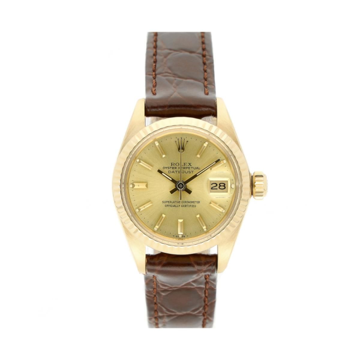 Rolex Datejust de 1980 com caixa de ouro amarelo de 26 mm e fecho de fivela. Este relógio Rolex feminino está em muito bom estado.