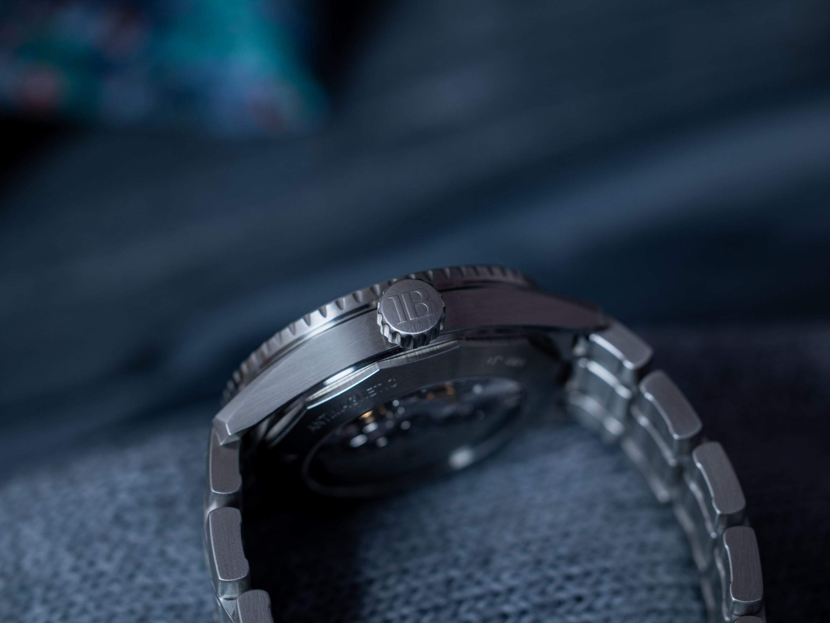 The grey sunburst dial looks incredible in various lighting conditions — from cool silver tones to deep charcoal — while the fully satin-brushed surfaces emphasize the purposeful, premium character of the watch.
