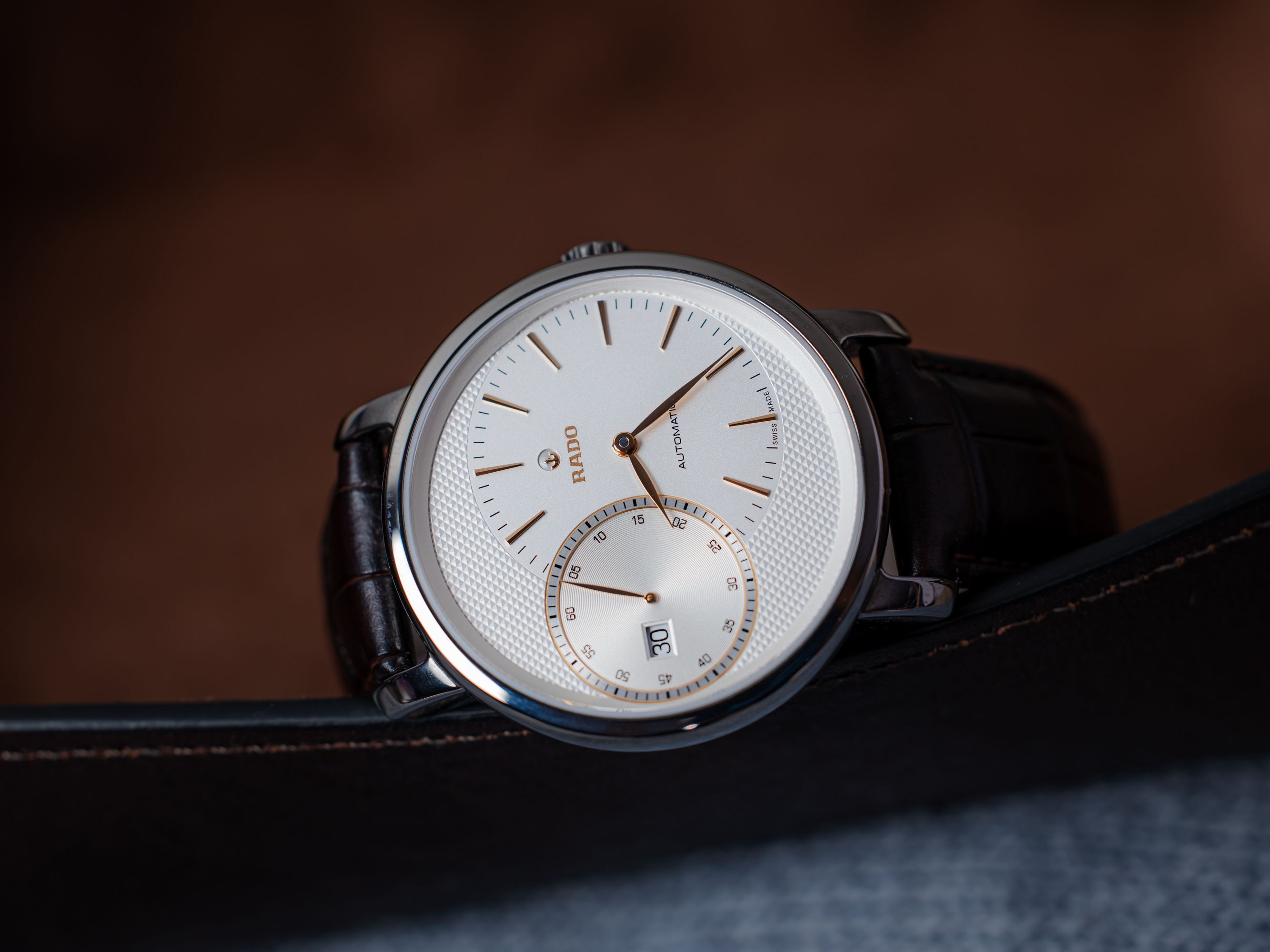 A completely new and elegant dress watch from Rado’s DiaMaster line. The dial features a beautiful sunburst finish which, combined with the gold-tone hands, creates an exceptionally refined and luxurious look.This model is perfect for formal occasions, yet versatile enough to serve as a sophisticated everyday timepiece.