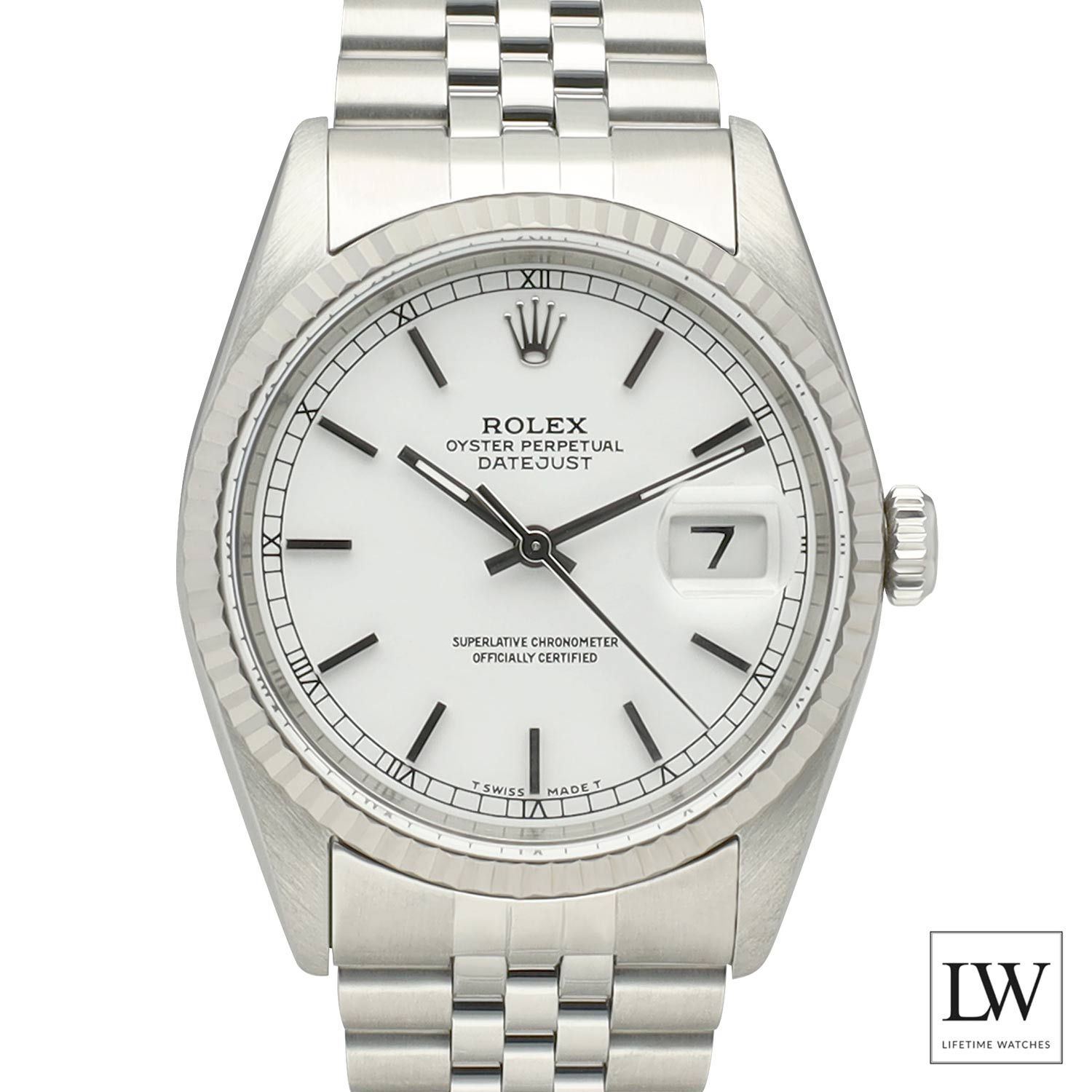 De Rolex Datejust 16234 is een tijdloze klassieker binnen de Rolex-collectie en al jarenlang geliefd om zijn elegante uitstraling en betrouwbare techniek. Dit prachtige exemplaar uit 1995 beschikt over een witte Minute Track dial, wat het horloge een frisse, verfijnde en uiterst stijlvolle look geeft. Perfect te dragen bij elke gelegenheid — van zakelijke meetings tot casual dagelijks gebruik.