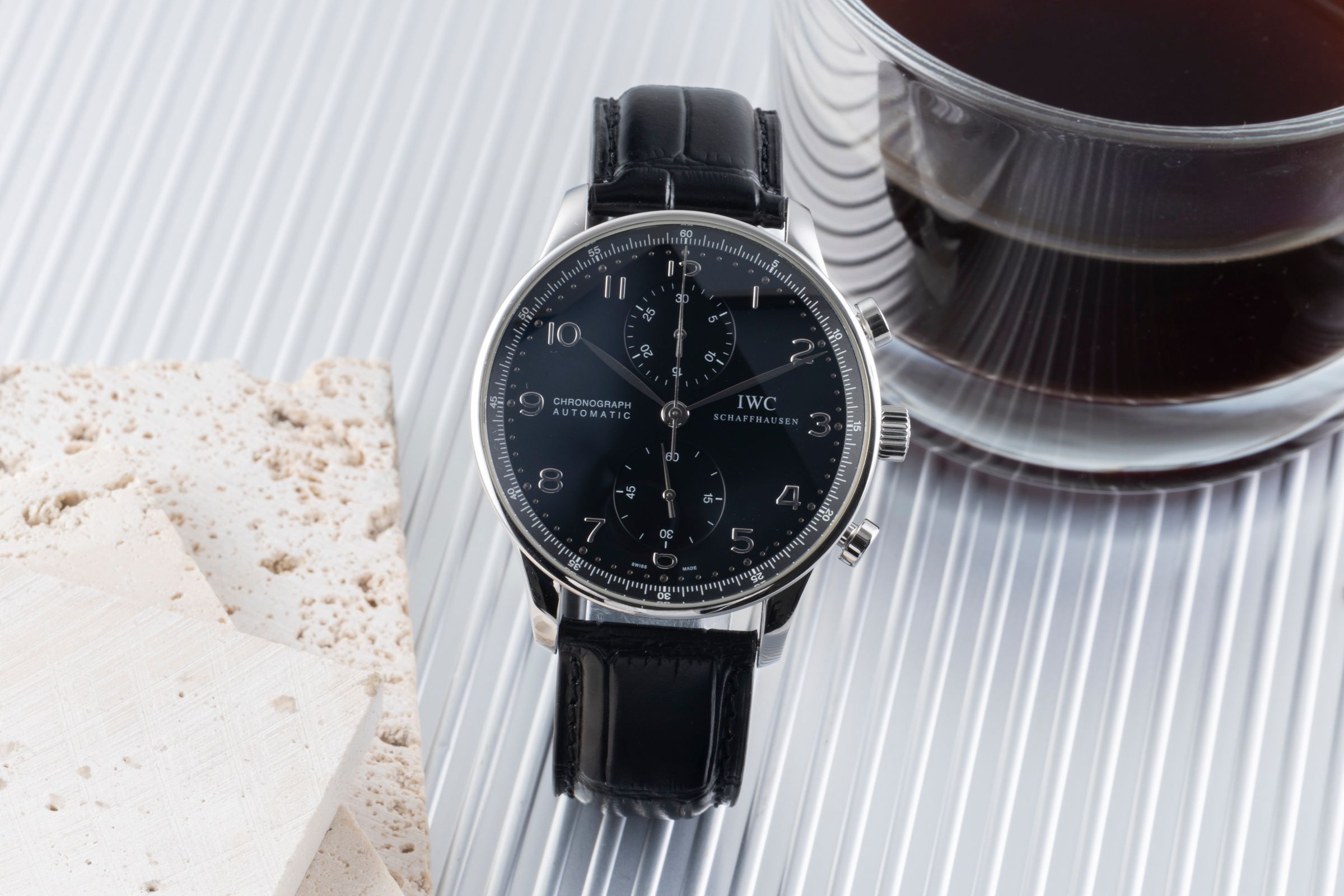Alternative title: IWC IW371438 Portuguese Chrono-Automatic Stainless Steel / Black; IWC Portugieser Chronograph Automatik Stahl Herrenuhr Ref. IW371438 B&P 2015 [2507128]