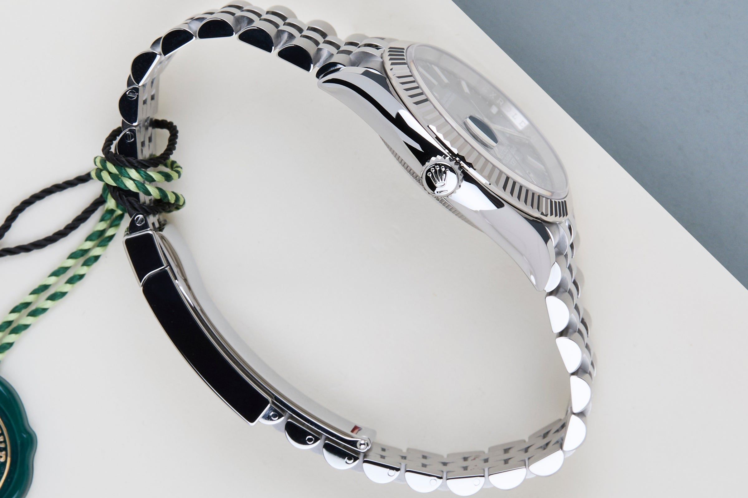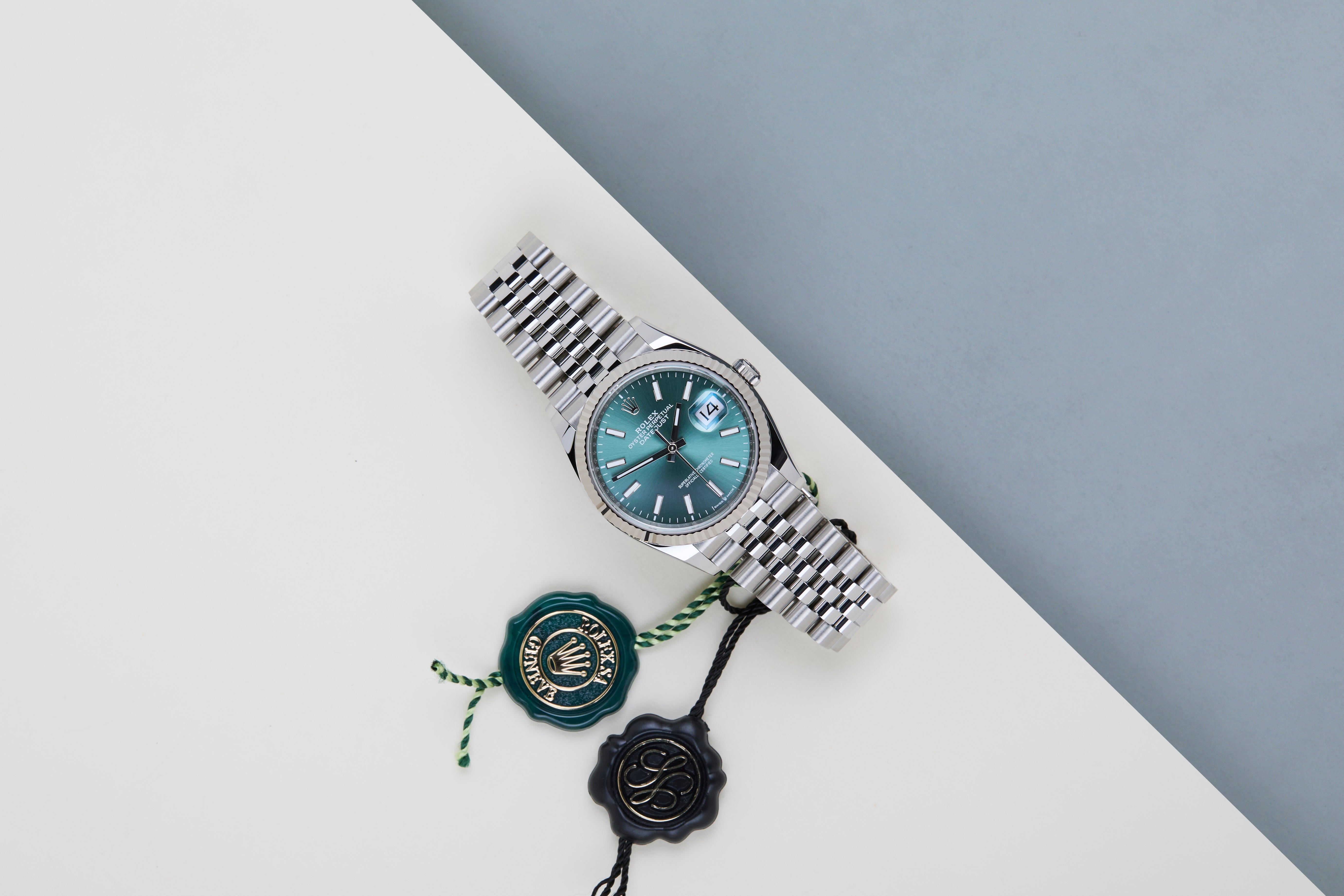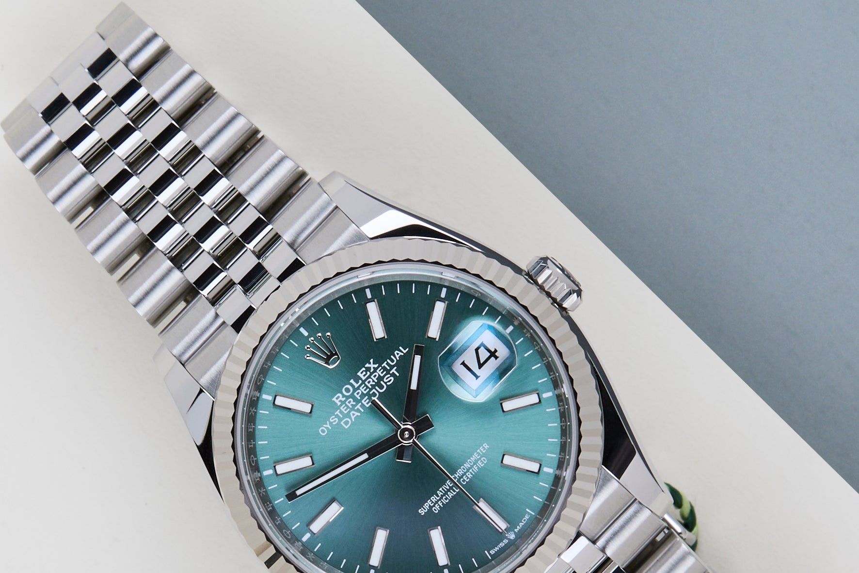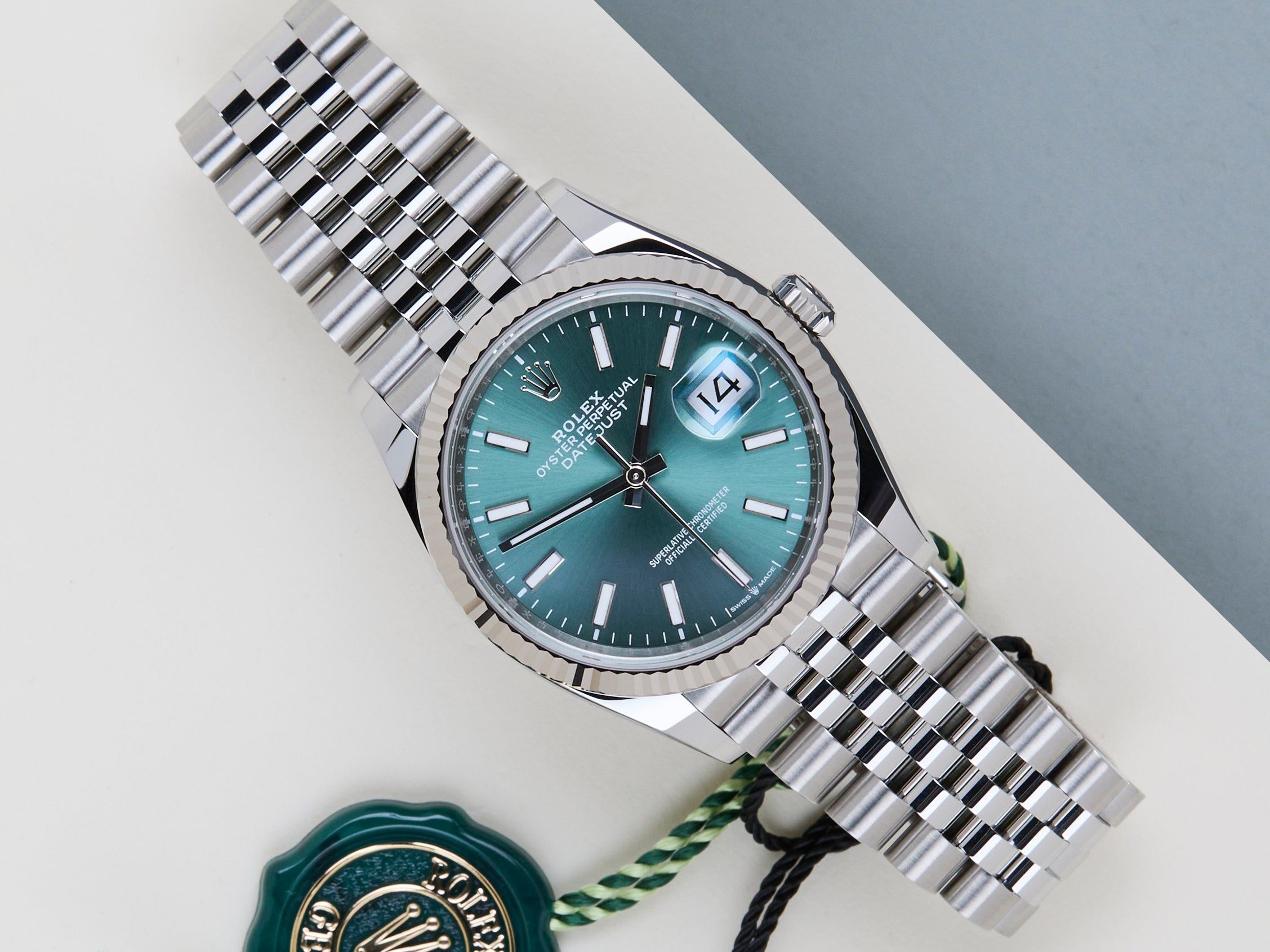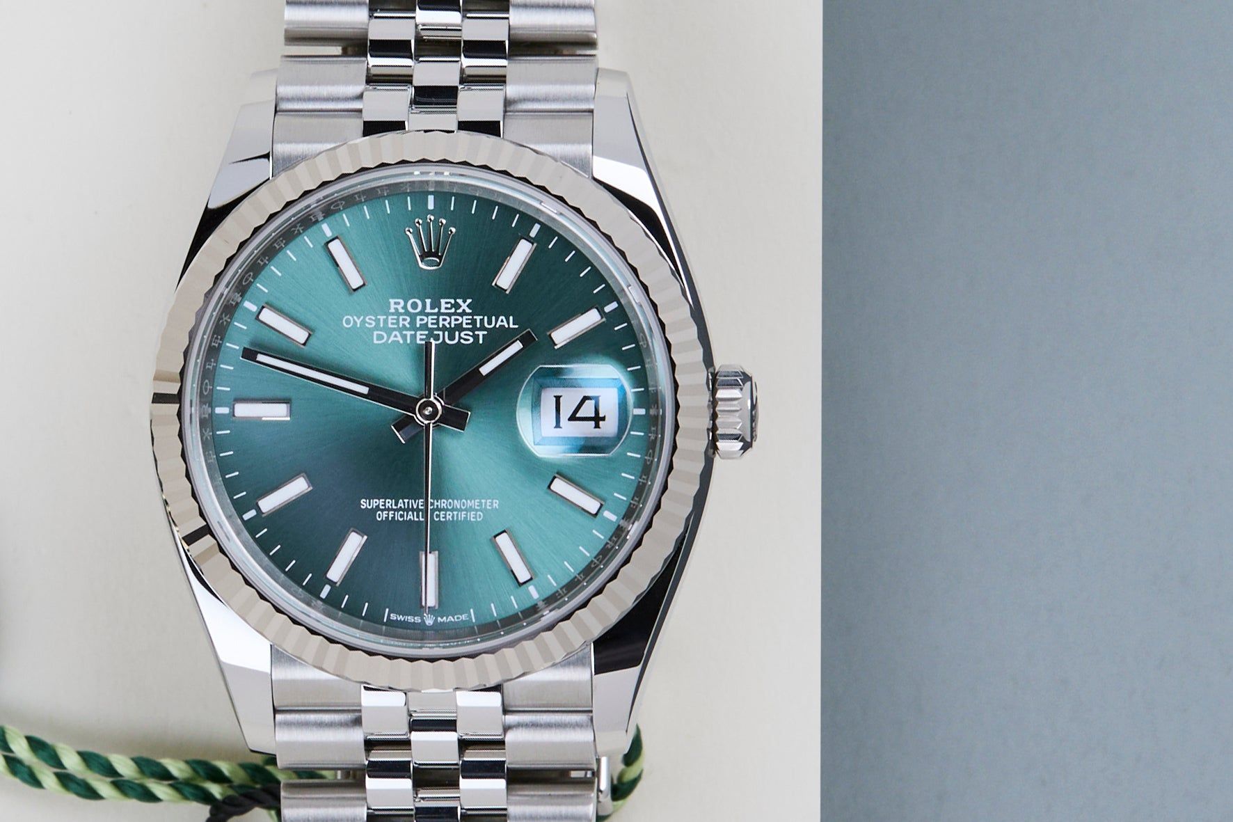 New & Unworn | Full Set | International Rolex Warranty Until December 2030Rolex introduced the original Datejust in 1945 to celebrate the company's 40th anniversary. Due to the various case sizes and materials, the Datejust has been ingrained in Rolex's history and remains incredibly popular for nearly 80 years.This Rolex Datejust 'Mint Green Dial - Jubilee' was sold for the first time in December 2025.This Datejust is made of a combination of 18k White Gold and stainless steel and is fitted with an Jubilee bracelet which is equipped with the Easylink. This extension, allows the wearer to either extend or shorten the bracelet by 5 millimeters, improving the wearability and usability of the watch.This Rolex Datejust 36 is in New & Unworn condition and comes with the original Rolex Warranty Card and box. Furthermore, the watch still has International Rolex Warranty until December 2030.