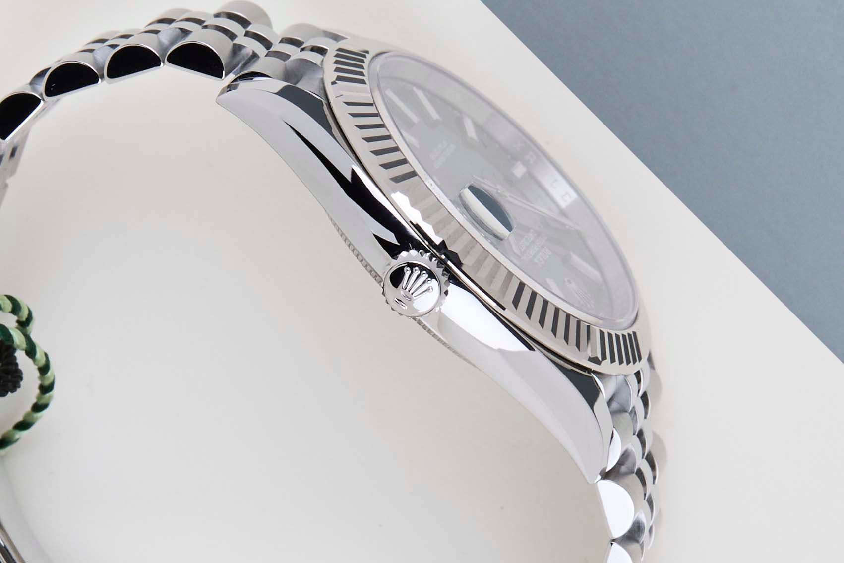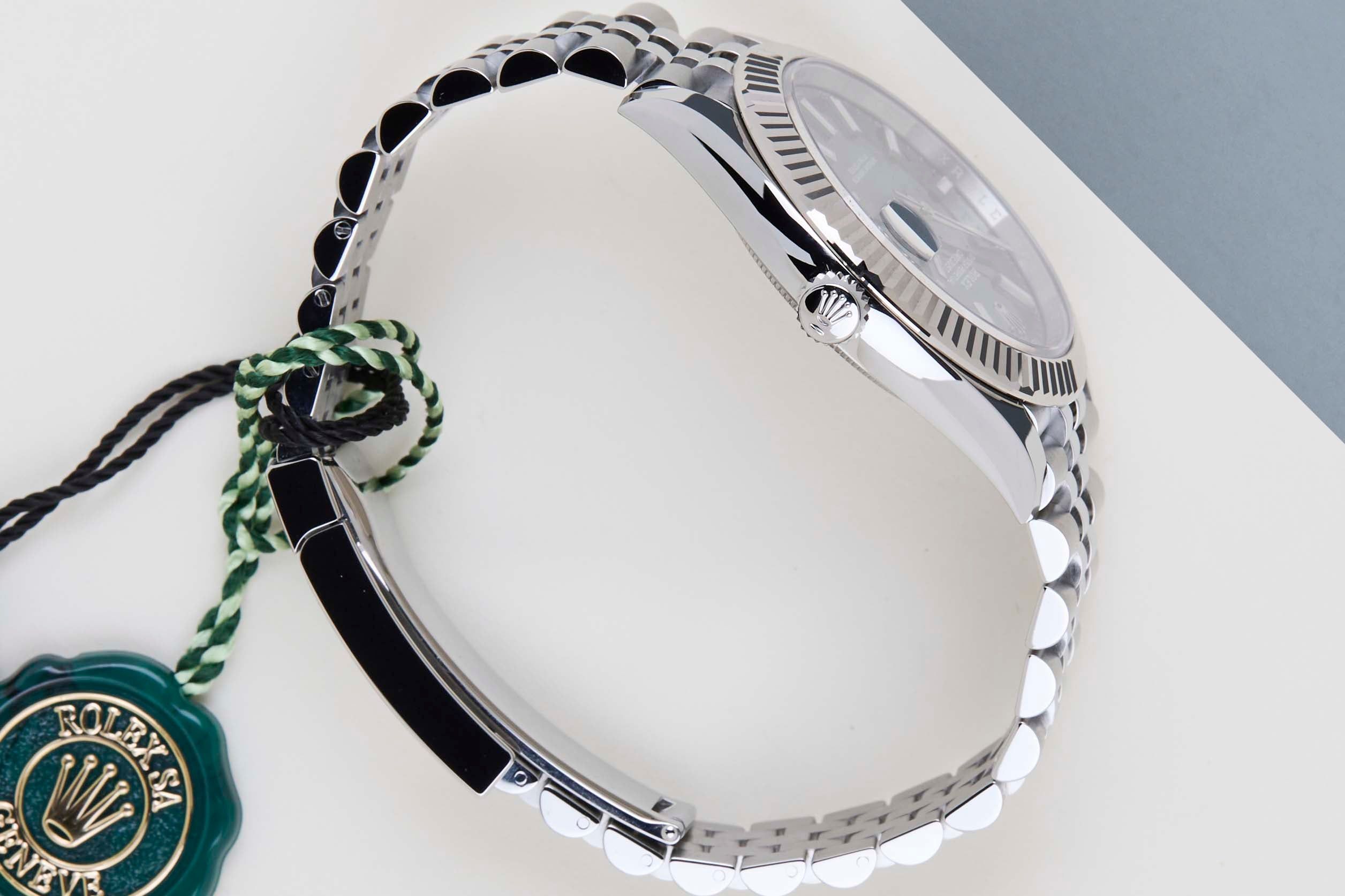 New & Unworn | Full Set | International Rolex Warranty Until December 2030 Rolex introduced the original Datejust in 1945 to celebrate the company's 40th anniversary. Due to the various case sizes and materials, the Datejust has been ingrained in Rolex's history and remains incredibly popular for 75 years.This Rolex Datejust 41 'Mint Green Dial - Jubilee' was sold for the first time in December 2025.This Datejust is made of a combination of 18k White Gold and stainless steel and is fitted with a Jubilee bracelet, which is equipped with the Easylink. This extension, allows the wearer to either extend or shorten the bracelet by 5 millimeters, improving the wearability and usability of the watch.This Rolex Datejust 41 is New & Unworn and comes with the original Rolex Warranty Card and box. Furthermore, the watch still has International Rolex Warranty until December 2030.