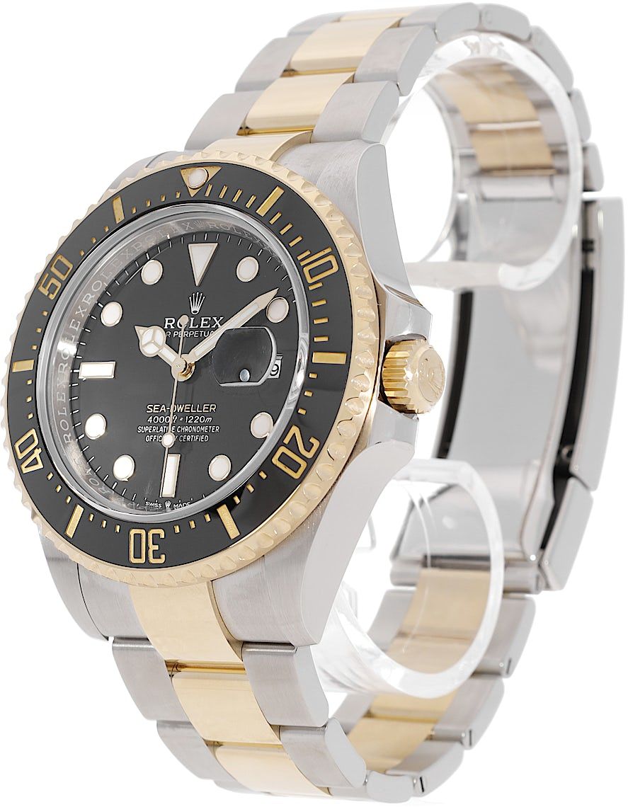 Rolex Sea-Dweller, Reference: 126603-0001, Gender: Male, Size: 43mm, Dial color: Black, Strap material: Stainless Steel Yellow Gold, Movement: Automatic, Year: 2024, Condition: Previously worn with some signs of usage. The movement is flawless and the case has been cleaned. watch tested to ensure full functionality. An inspection by our certified watchmakers guarantees its authenticity., Documents: Original papers, CHRONEXT Certificate