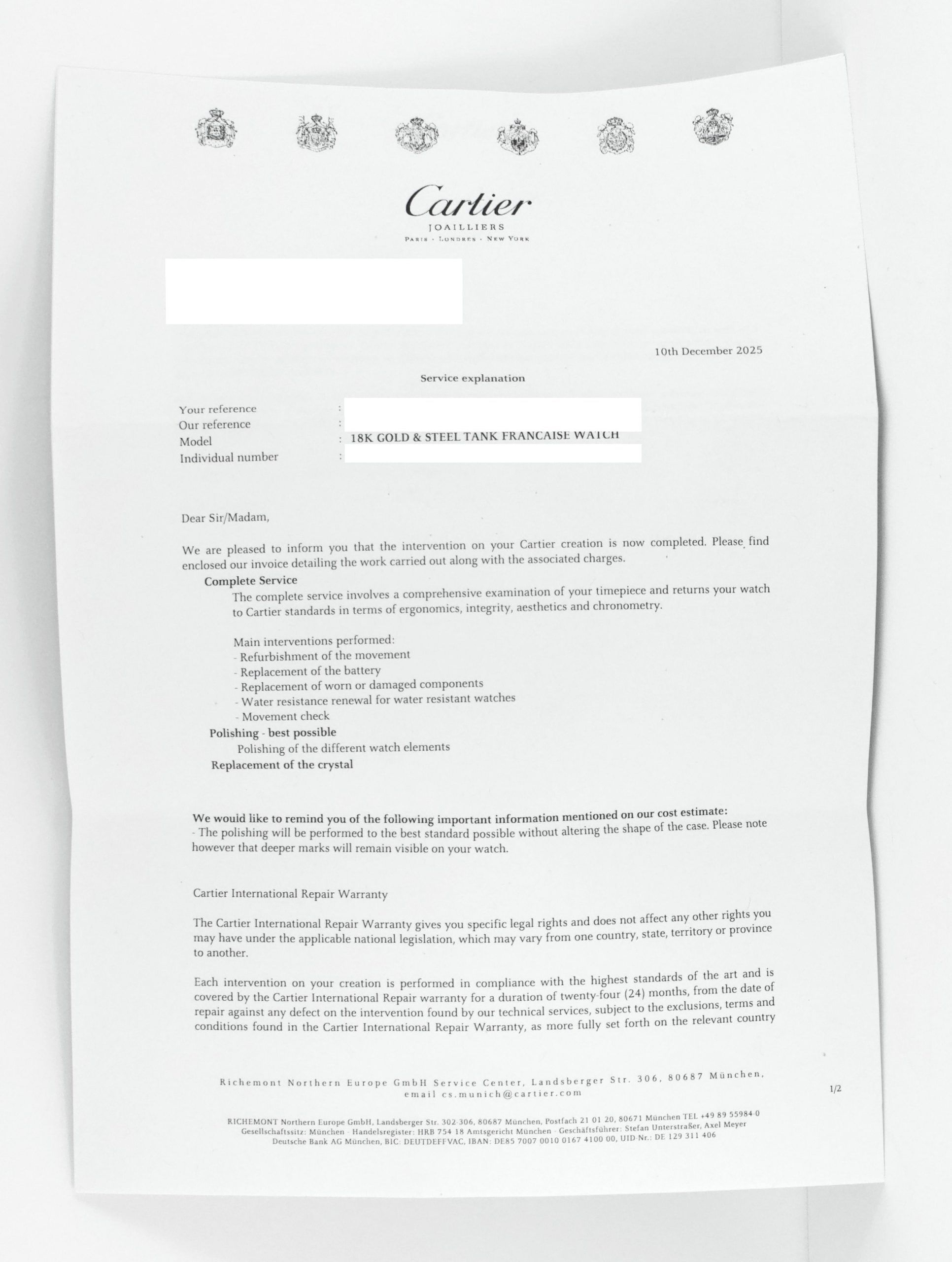 Service Papieren Cartier 12-2025