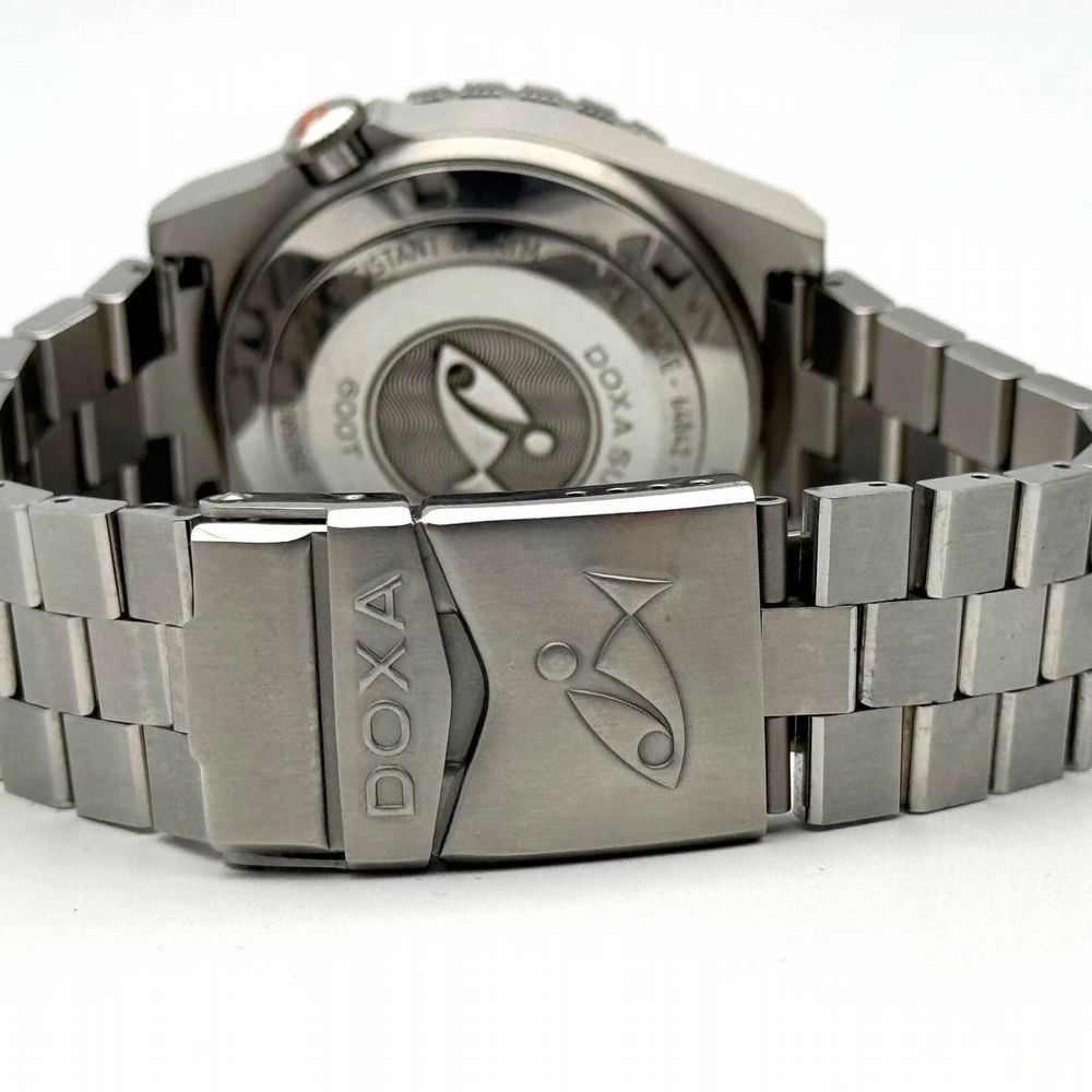 This model comes paired with a high-quality Doxa bracelet strap for rugged durability and comfort. Additionally, an new and unworn Doxa rubber strap is included.