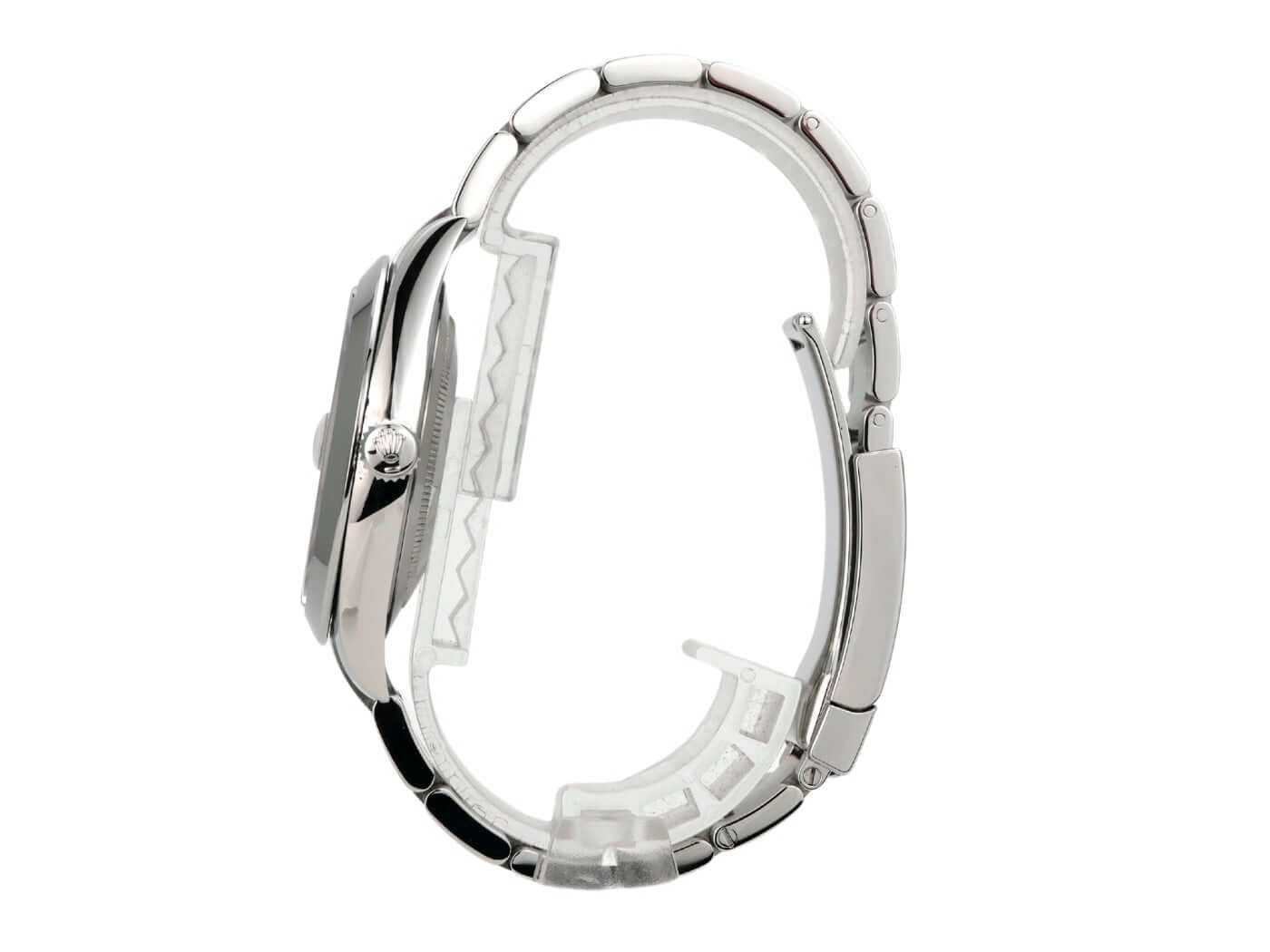 Caixa feita de aço inoxidável polido e acetinado, diâmetro da caixa de 41 mm, bezel de aço inoxidável polido, pulseira Oyster de aço inoxidável polido e acetinado com fecho dobrável, mostrador na cor ródio com números romanos, ponteiros luminosos, movimento automático, calibre 3235 da manufatura Rolex, cronômetro, reserva de marcha de 70 horas, display de data, cristal de safira resistente a riscos, coroa rosqueada, fundo da caixa rosqueado em aço inoxidável, resistente à água até 10 bar.