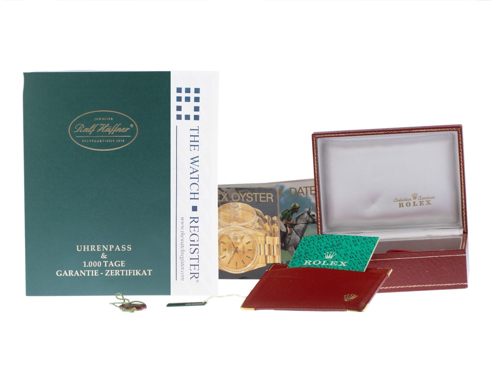 Inklusive certified pre owned Zertifikat / Uhrenpass mit einem Farbbild, der genauen Beschreibung sowie dem Wiederbeschaffungswert der Uhr über 8500,-€ und 1000 Tage Garantie ab Kaufdatum.