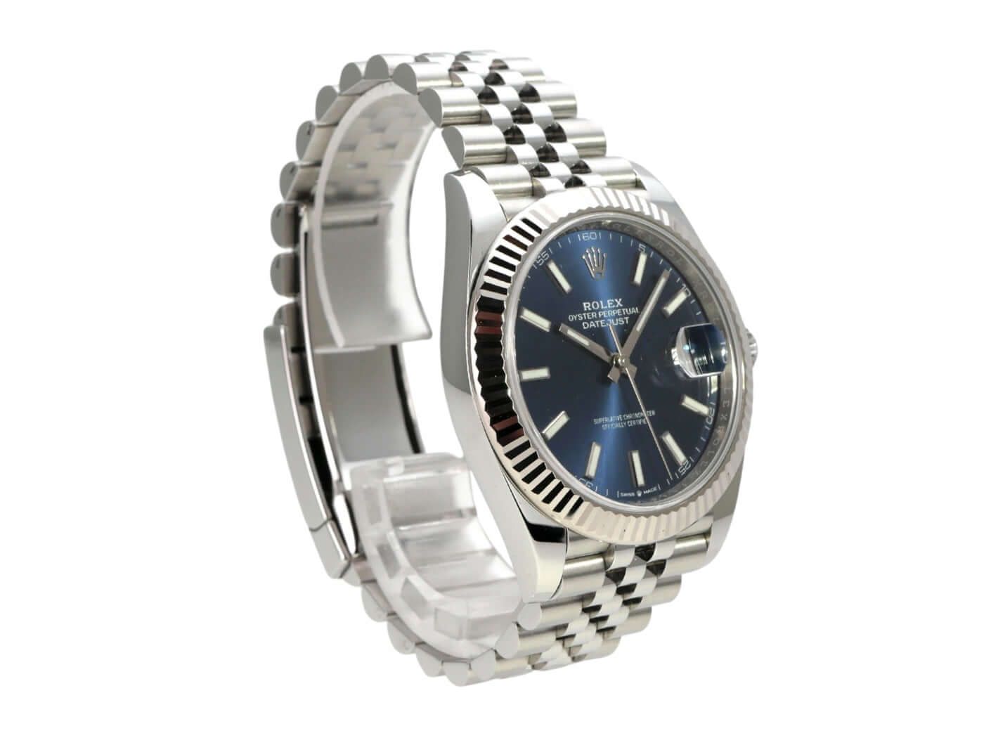 Rolex Datejust 41 Ref. 126334 Stainless Steel / White Gold Blue Jubilee Bracelet from 2019Case made of polished and satin-finished stainless steel, case diameter 41 mm, fluted 18 kt white gold bezel, Jubilee bracelet made of polished and satin-finished stainless steel with folding clasp, blue dial with 18 kt white gold luminous indices, luminous hands, automatic movement, Rolex manufacture caliber 3235, 70 hours power reserve, date display, chronometer, scratch-resistant sapphire crystal, screw-down crown, screwed stainless steel case back, water-resistant up to 10 bar.